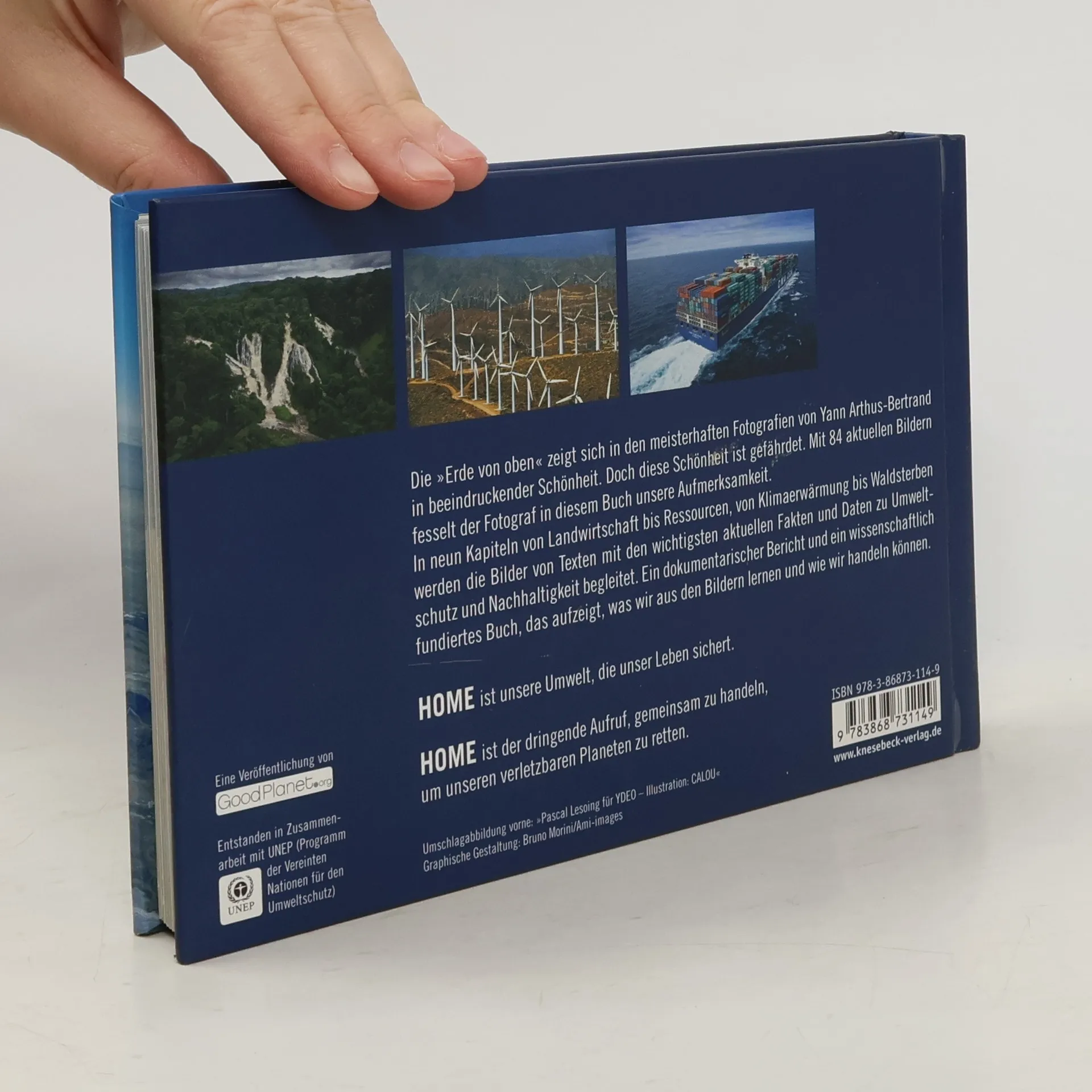 Yann Arthus-Bertrand porträtiert seit Jahren in faszinierenden Aufnahmen unseren Planeten. Aus dieser Arbeit entwickelte sich sein großes Engagement für die Bewahrung der unvergleichlichen Schönheit der Erde. Seine vielfältigen Aktivitäten münden nun in diesem großen, weltweiten Buch- und Filmprojekt. Eine Auswahl von beeindruckenden Fotografien des Meisters führt in die wichtigsten Themen der Ökologie und Nachhaltigkeit ein: Landwirtschaft, Städte, Öl, Meer, Wasser, Wald und Mensch. Kompakte und faktenreiche Texte erläutern die Bedrohung der Erde durch wachsende Bevölkerung und Technisierung. Alternative Möglichkeiten, unsere Ressourcen zu erhalten und unsere Umwelt zu schützen, werden anschaulich aufgeführt. Home zeigt anhand bewegender Bilder und wachrüttelnder Texte, wie wir unsere Heimat, diesen wunderbaren Planeten Erde, bewahren und unsere Zukunft sichern können.