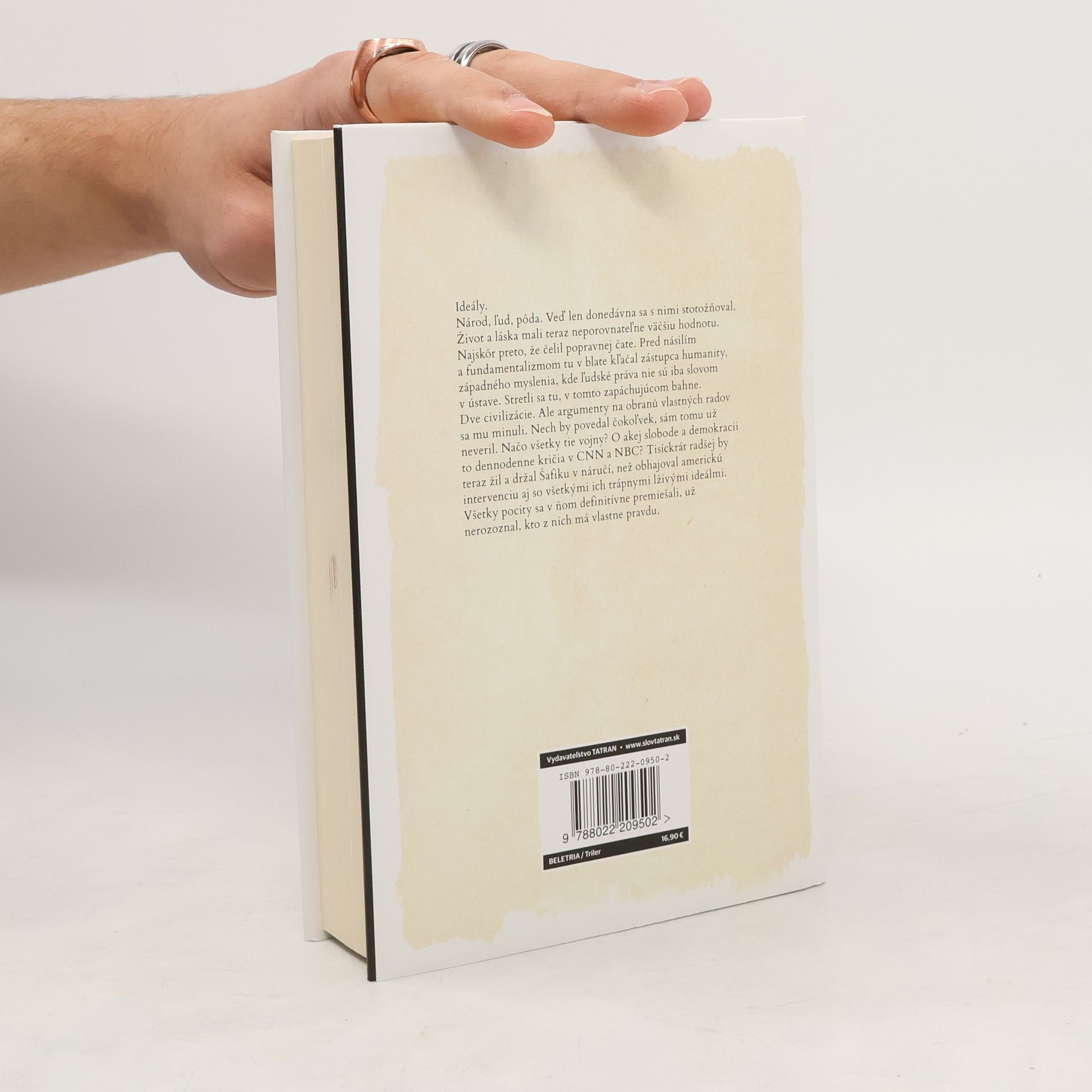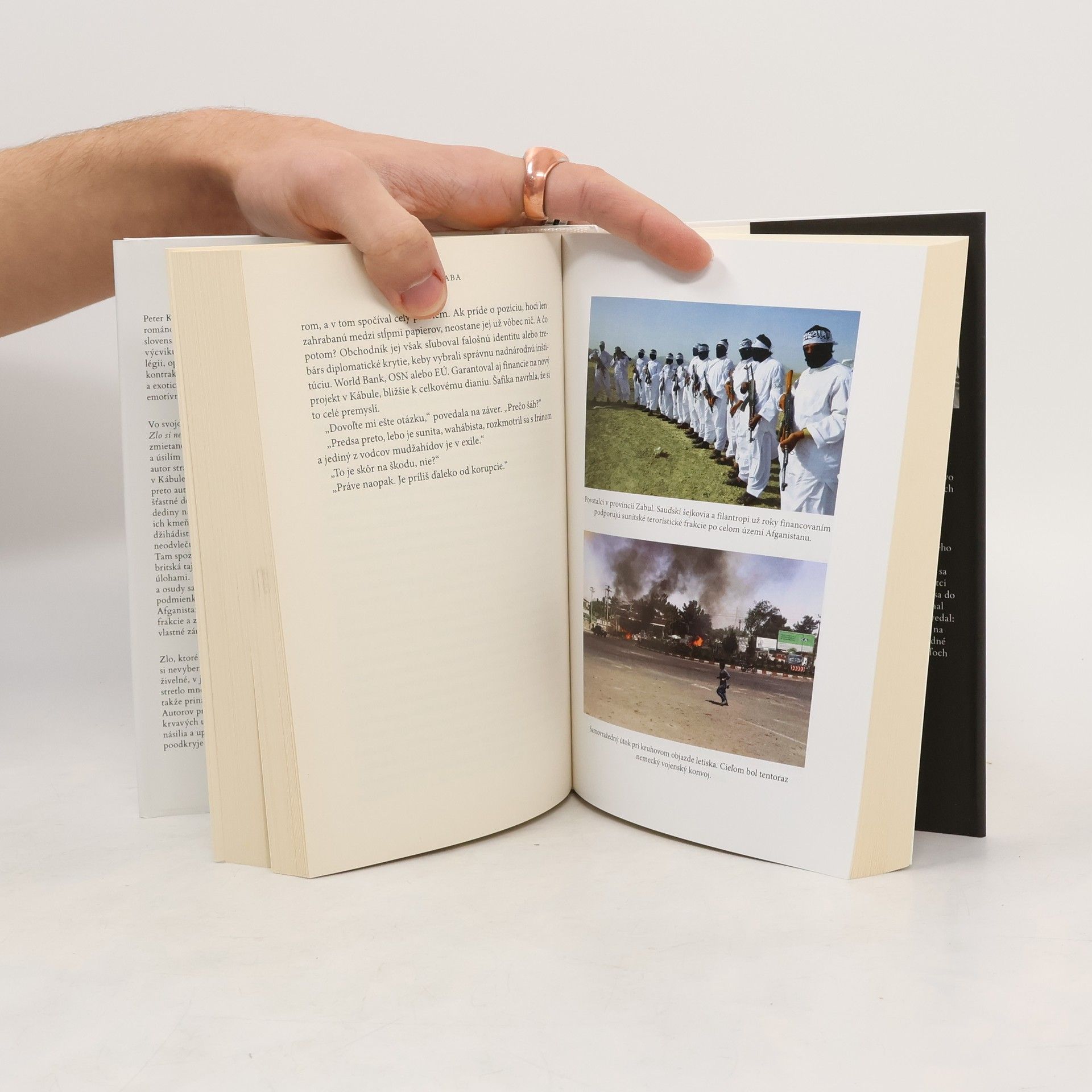 Po necelých siedmich rokoch islamského fundamentalizmu hnutia Taliban sa Afganistan zmenil na krajinu bez tváre a duše, pričom všetci túžili po mieri. Obyvatelia sa vrátili do minulosti, do čias proroka Mohameda. Mnohí si myslia, že Taliban je minulosťou, no vonkajší vzhľad mladých ľudí v džínsoch a západných tričkách nezmení ich hlboké rany. Autor Peter Kijaba, so zaujímavým životným príbehom, prešiel službou vo Francúzskej cudzineckej légii a pracoval v rizikových oblastiach na Haiti a v Afganistane, dnes pôsobí v Iraku. Vo svojich spomienkach sa vracia do Afganistanu, krajiny, ktorá je pre slovenského čitateľa vzdialená a exotická, no aj tak sme tam vyslali vojenský kontingent. Dva osudy – Kalaša Timuka a britskej agentky Šahily – sa neustále pretínajú, predstavujúc dva svety a civilizácie. Autor zachytáva aktuálne udalosti formujúce Afganistan, úlohu EÚ a rôznych sprostredkovateľov mieru, ktorí sledujú len svoje ciele. Zlo preniká hlboko pod kožu čitateľa, odhaľujúc realitu plnú teroru a beznádeje, ktorá sa rozprestiera nad touto bohatou krajinou, kde všetci túžili po mieri.