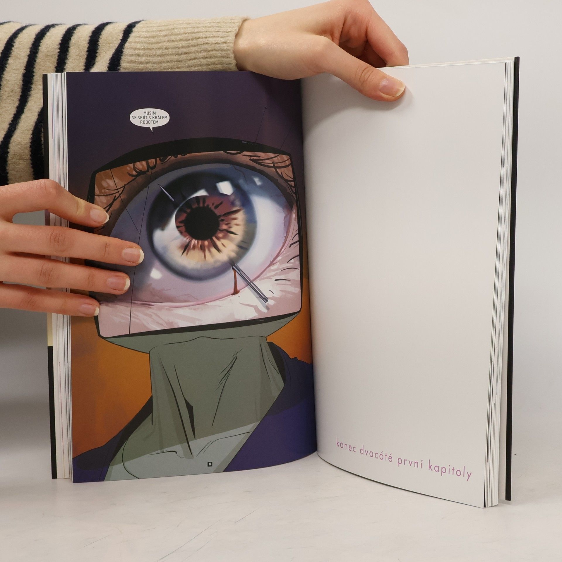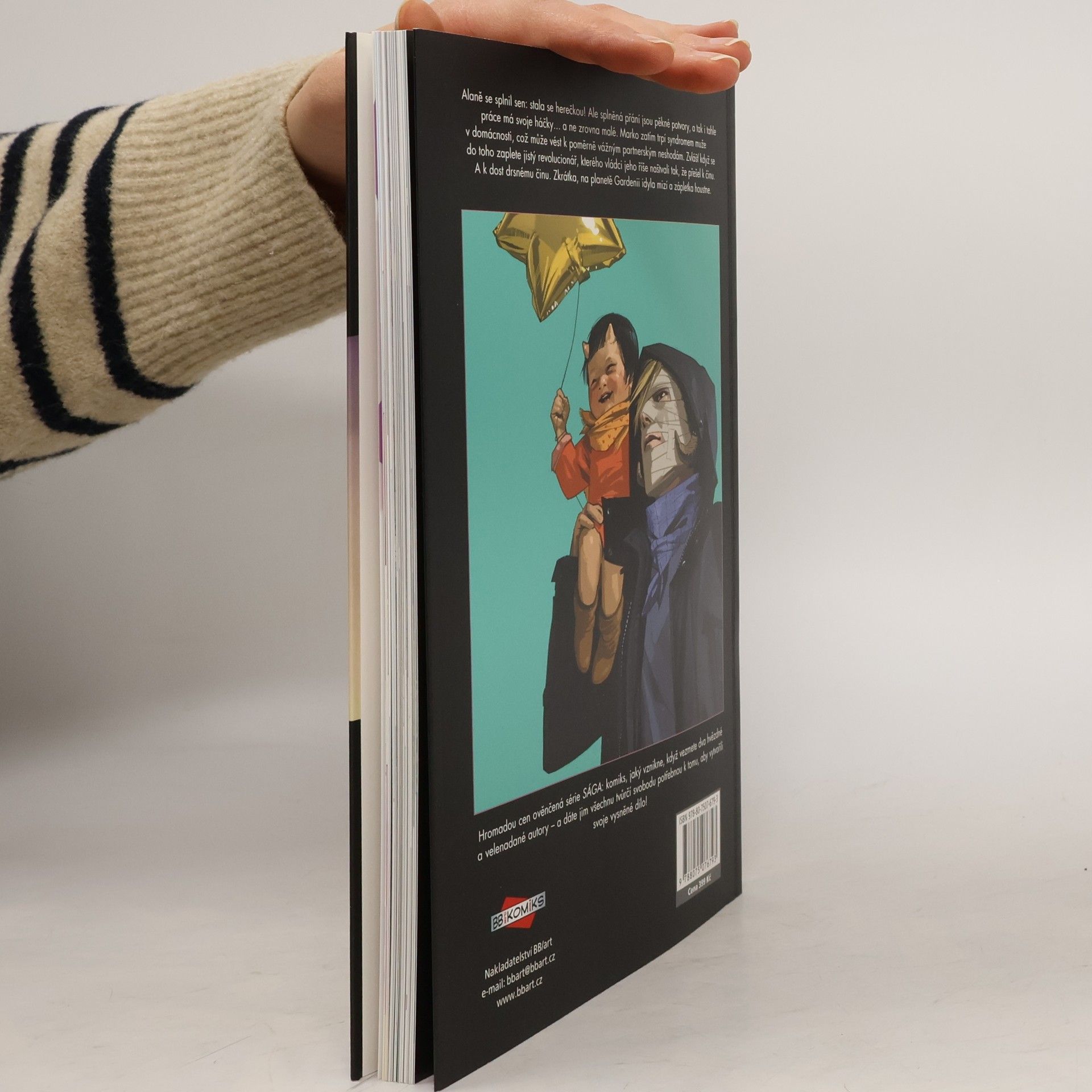Alaně se splnil sen: stala se herečkou v poloilegálním virtuálním šou známém jako Otevřený okruh. Ale splněná přání jsou pěkné potvory, a tak i tahle práce má svoje háčky… a ne zrovna malé. Marko zatím trpí syndromem muže v domácnosti, což může vést k poměrně vážným partnerským neshodám. Zvlášť když se do toho zaplete robotický revolucionář, kterého aristokratičtí vládci Robotického království naštvali tak, že přešel k činu. A k dost drsnému činu. Zkrátka, na planetě Gardenii idyla mizí a zápletka houstne. Hromadou cen ověnčená série Sága: komiks, jaký vznikne, když vezmete dva hvězdné a velenadané autory – a dáte jim všechnu tvůrčí svobodu potřebnou k tomu, aby vytvořili svoje vysněné dílo! Spolu s davy fanoušků po celém světě sledujte osudy Marka a Alany, milenců a čerstvých rodičů, kteří přestali být vojáky v dlouhé válce, jež zachvátila skoro celý vesmír, a stali se dezertéry, které nemilosrdně pronásledují obě strany konfliktu. Protože pro mocipány by nebylo moc příjemné, kdyby se svět dozvěděl, že zástupci dvou nesmiřitelných ras se mohou nejen milovat, ale také plodit potomky…