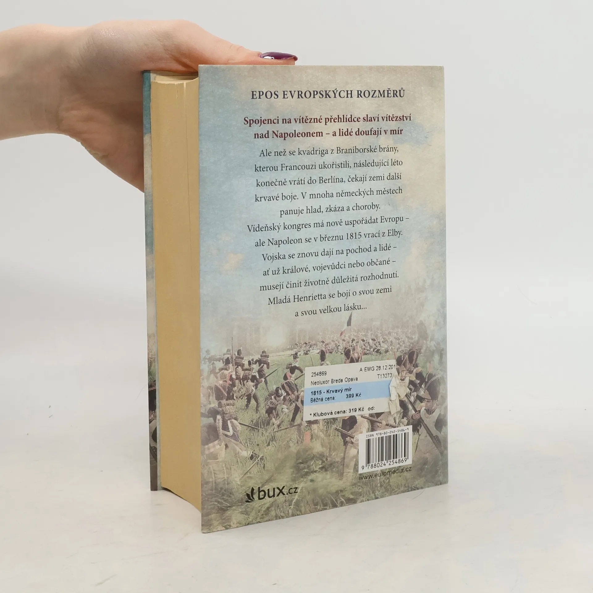 Podzim 1813, po bitvě národů u Lipska Spojenci na vítězné přehlídce slaví vítězství nad Napoleonem – a lidé doufají v mír. Ale než se kvadriga z Braniborské brány, kterou Francouzi ukořistili, následující léto konečně vrátí do Berlína, čekají zemi další krvavé boje. V mnoha německých městech panuje hlad, zkáza a choroby. Vídeňský kongres má nově uspořádat Evropu – ale Napoleon se v březnu 1815 vrací z Elby. Vojska se znovu dají na pochod a lidé – ať už králové, vojevůdci nebo občané – musejí činit životně důležitá rozhodnutí. Mladá Henrietta se bojí o svou zemi a svou velkou lásku... Pokračování románu 1813 – Válečný požár