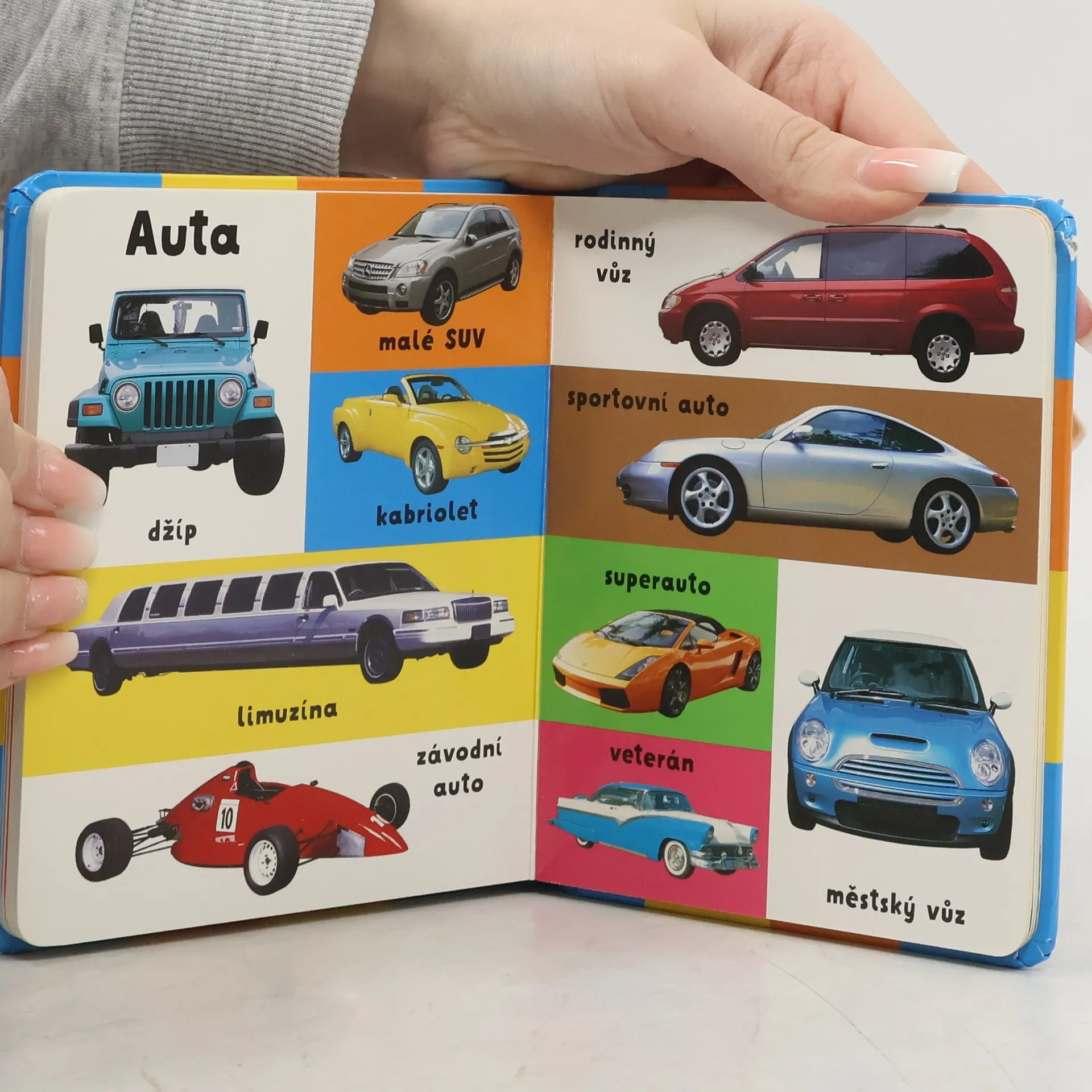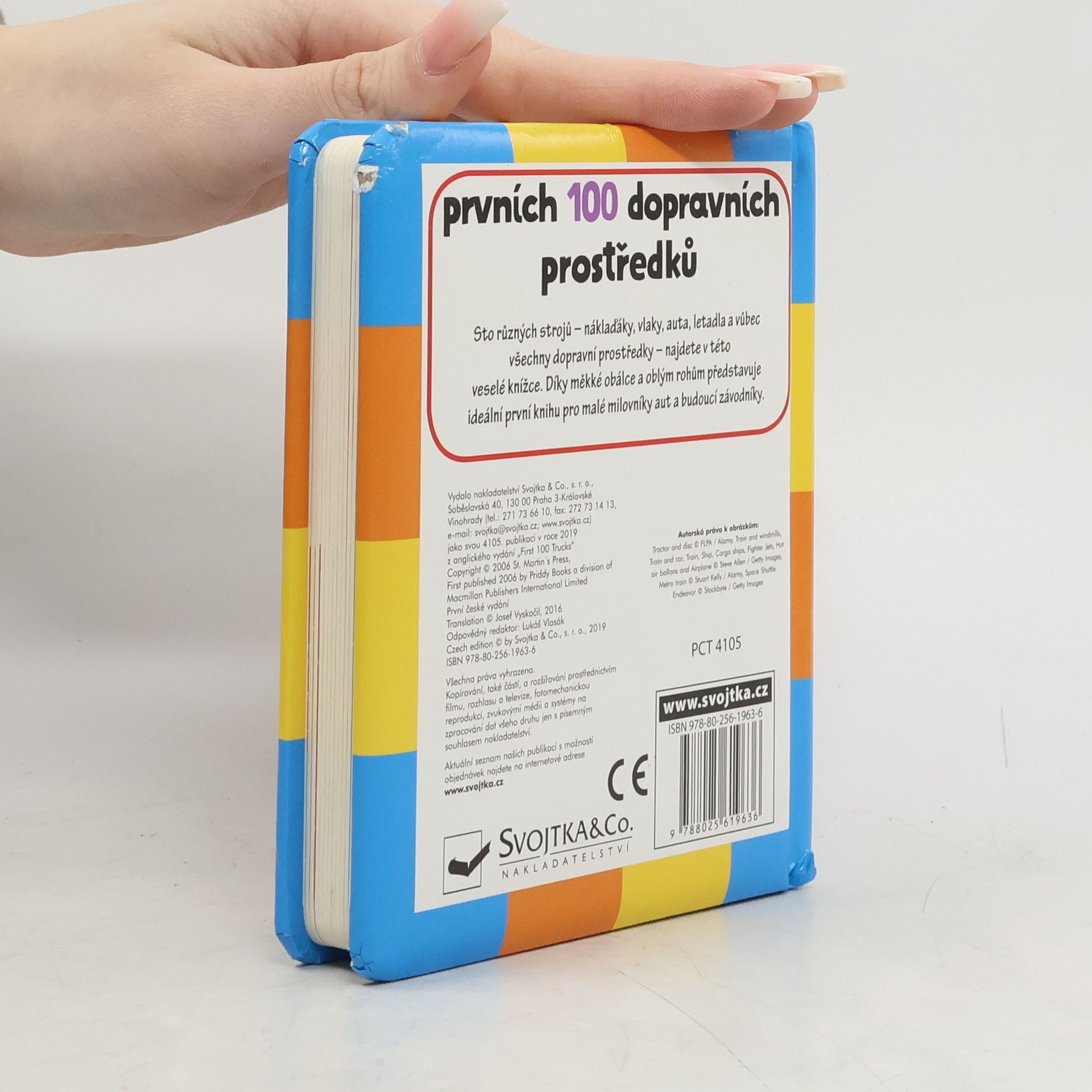 Fascinují vaše dítě náklaďáky na stavbě, traktory na polích a rychlé motorky na silnicích? Pak je tato knížka zaměřená na rozvíjení slovní zásoby z oblasti dopravních prostředků určena právě jim. Sto různých strojů - sto různých obrázků s popisky. Spolu s rozšiřováním aktivní slovní zásoby si v ní děti procvičí i barvy ("Červené, nebo modré auto?") a protiklady ("Malé, nebo velké auto?").Náklaďáky, vlaky, auta, letadla a vůbec všechny dopravní prostředky, co se pohybují, najdete v této veselé knížce. Díky měkké obálce a oblým rohům představuje ideální první knihu pro malé milovníky auťáků a budoucí závodníky.