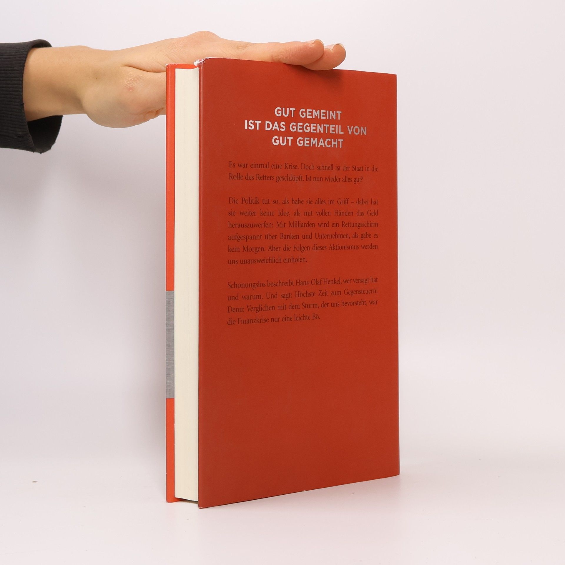 Gut gemeint ist das Gegenteil von gut gemacht Es war einmal eine Krise. Doch schnell ist der Staat in die Rolle des Retters geschlüpft. Ist nun wieder alles gut? Die Politik tut so, als habe sie alles im Griff – dabei hat sie weiter keine Idee, als mit vollen Händen das Geld herauszuwerfen: Mit Milliarden wird ein Rettungsschirm aufgespannt über Banken und Unternehmen, als gäbe es kein Morgen. Aber die Folgen dieses Aktionismus werden uns unausweichlich einholen. Schonungslos beschreibt Hans-Olaf Henkel, wer versagt hat und warum. Und sagt: Höchste Zeit zum Gegensteuern! Denn: Verglichen mit dem Sturm, der uns bevorsteht, war die Finanzkrise nur eine leichte Bö.
