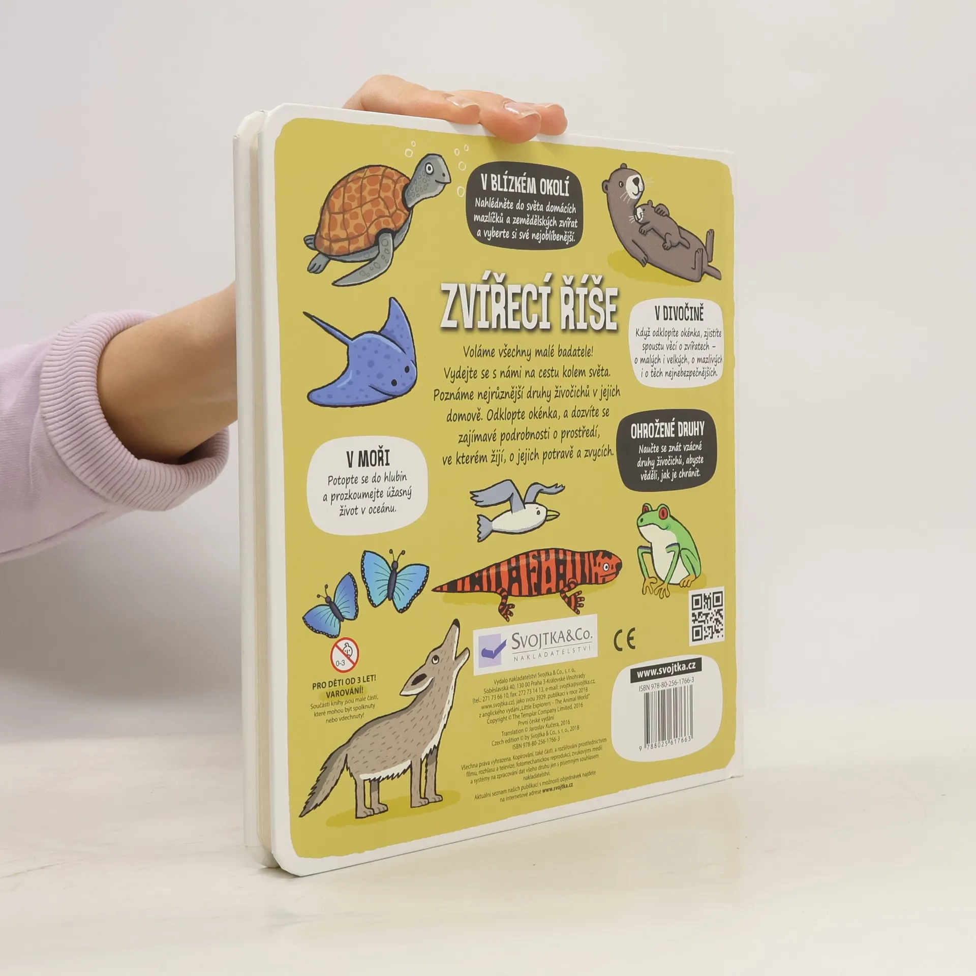 Zveme všechny malé průzkumníky k objevování – odklopte více než 50 okének a prozkoumejte svět zvířat skrz naskrz! Je toho přece spousta k objevování! Slon, kohout, králík, mravenec, kráva, velbloud, myš, had... Zveme všechny malé průzkumníky k objevování! Vydejte se s námi na cestu kolem světa a poznejte nejrůznější druhy živočichů v jejich domovech! Odklopte více než 50 okének, nahlédněte dovnitř a prozkoumejte svět zvířat skrz naskrz! Zjistěte zajímavé podrobnosti o prostředí, kde malá i velká zvířata žijí, o tom, která zvířata jsou přátelská a která nebezpečná, zjistěte něco o jejich potravě, o jejich zvycích, naučte se poznávat vzácné druhy živočichů, abyste věděli, jak je chránit, potopte se do hlubin a prozkoumejte úžasný život v oceánech a mnoho dalšího – je toho přece spousta k objevování!