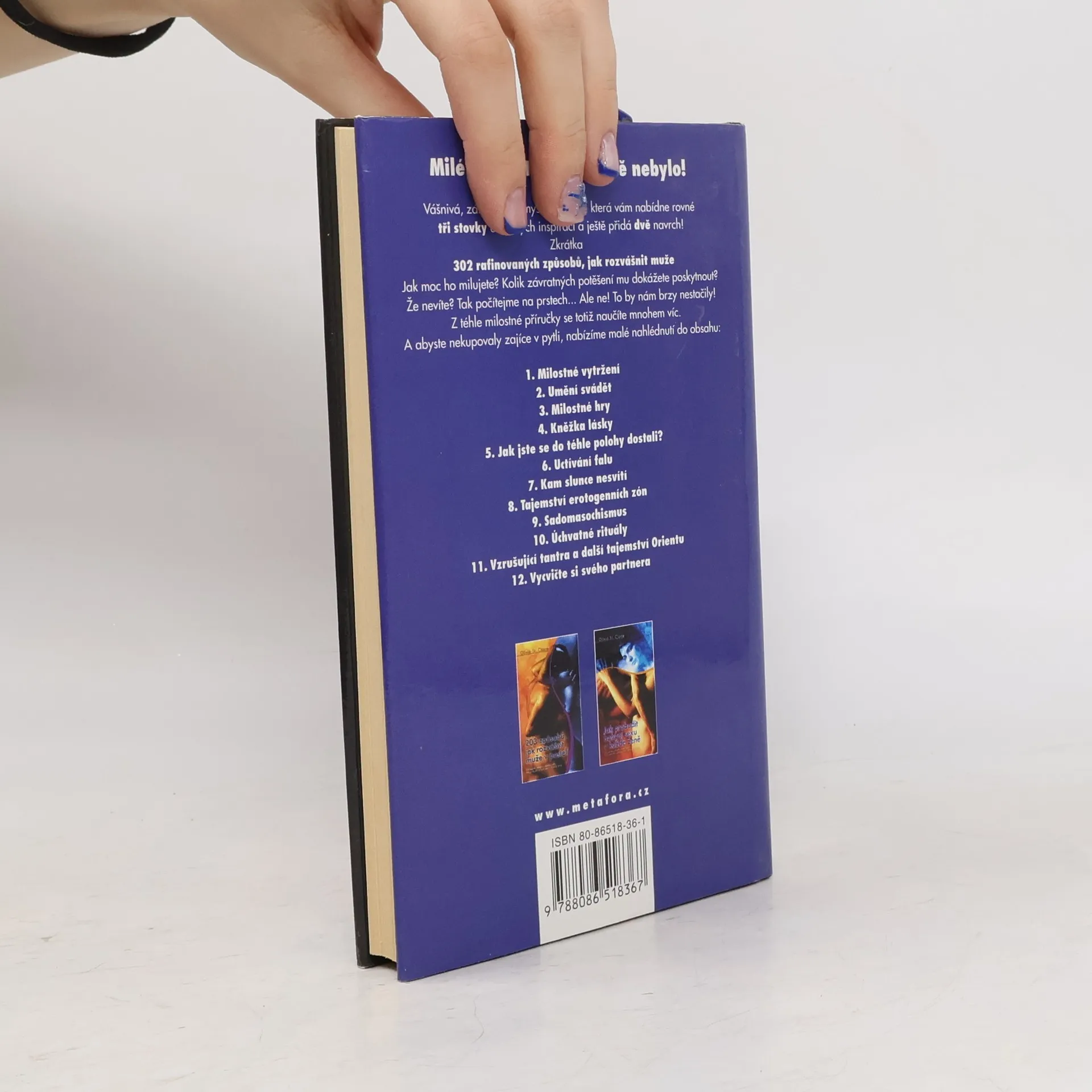 "Tajemství nespočívá ve fyzické kráse či v dokonalé technice, ale v odvaze, s níž odhalíte své nejniternější ženské já," říká Olivia St. Claire, autorka, jejíž příjmení by v doslovném překladu znamenalo „svatá Klára". A stejně jako se v ní nevinně ctnostné jméno pojí s líbezně lechtivými myšlenkami, tak se i v její knize mísí oddaná láska s nejodvážnějšími „postelovými" vylomeninami. Odvěké umění, jehož cílem vždycky bylo, je a bude připravit muže o rozum a utopit ho v uragánu vášně, se tentokrát zaměřuje na ty nejrafinovanější, pokročile milostné techniky a poskytuje nám tu nejžhavější inspiraci. Kdybychom chtěly vyzkoušet každý den jeden z jejích geniálních nápadů, mohly bychom dnes začít u prvního a ještě by nám vystačily skoro na celý rok.