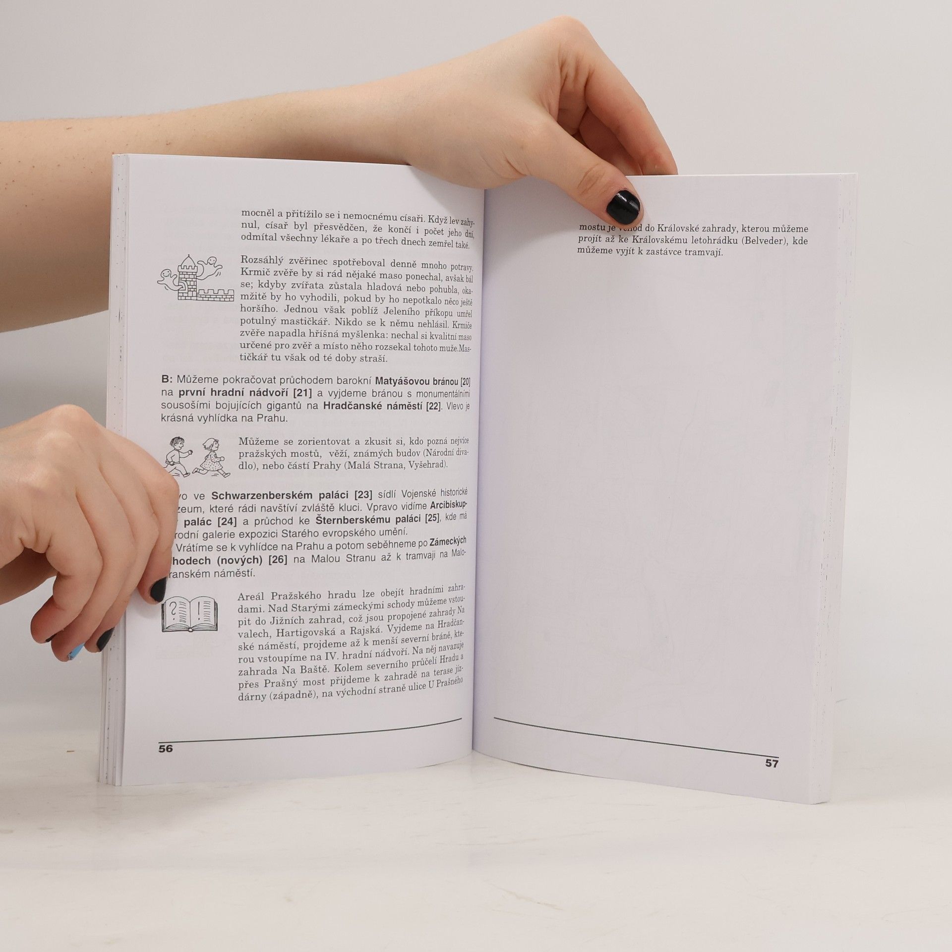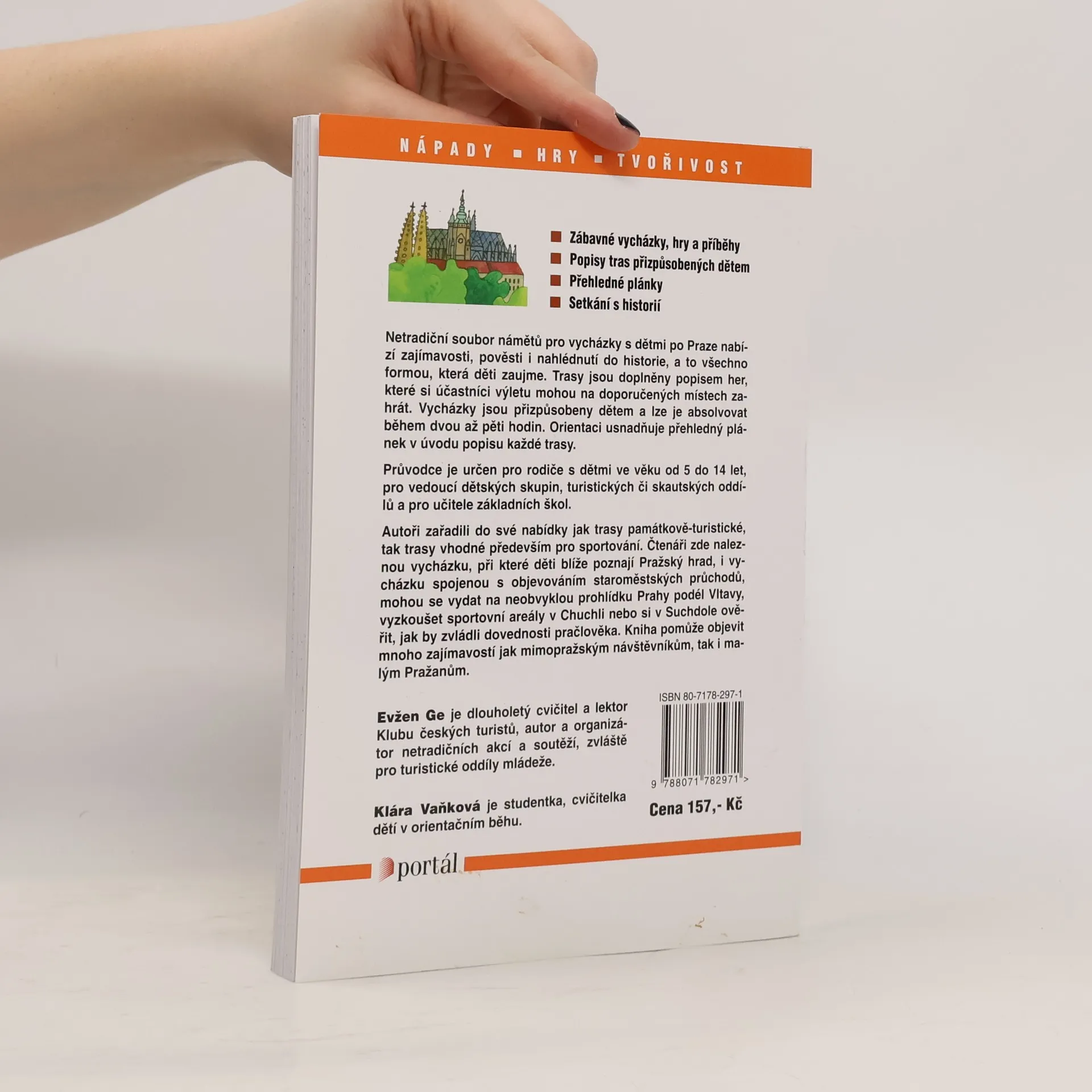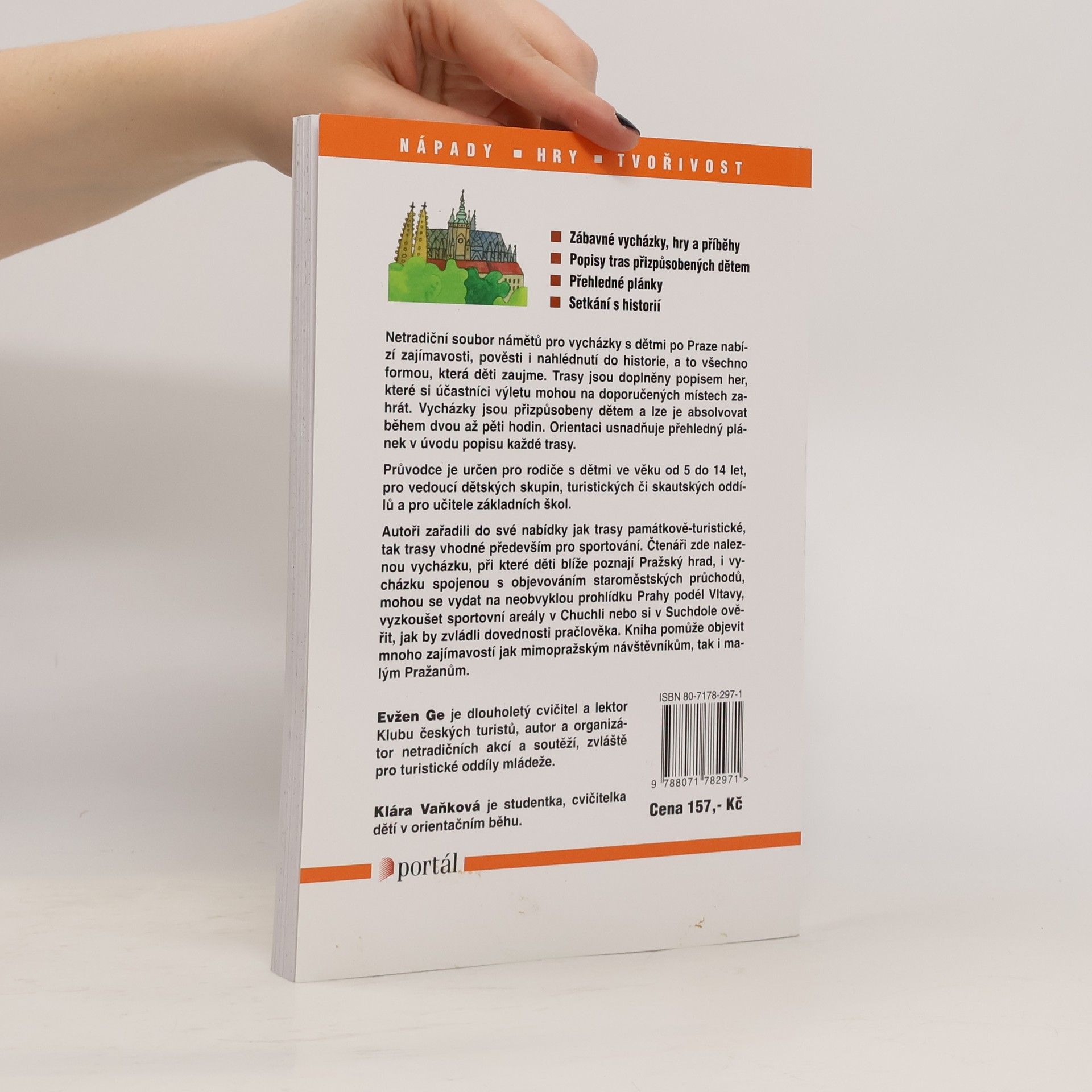 Netradiční soubor kratších vycházek po Praze a jejím blízkém okolí čtivou formou popisuje zajímavosti, pověsti, ale také hřiště a nabízí hry, které je možné si cestou zahrát. Průvodce je vhodný pro rodiče s dětmi ve věku od 5 do 13 let, pro vedoucí dětských skupin a učitele základních škol. Jednotlivé trasy přizpůsobené dětem lze absolvovat během dvou až pěti hodin. Orientaci usnadňuje náčrt v úvodu popisu každé trasy. Některé trasy jsou památkově-turistické, jiné jsou vhodné spíše pro sportování nebo vycházku. Zájemci poznají blíže nejen Pražský hrad, ale objeví i staroměstské průchody, mohou se vydat na neobvyklou prohlídku Prahy ze břehů podél Vltavy a vyzkoušet sportovní areály v Chuchli nebo v Kunratickém lese. Průvodce není určen jen pro mimopražské návštěvníky a školní výlety, mnoho zajímavostí objeví i rodilí Pražáci.