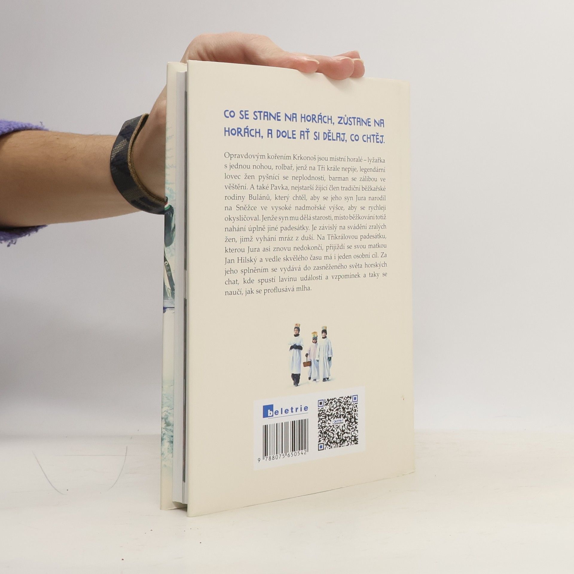 Knižní zpracování úspěšné situační komedie Vojty Kotka. „Co se stane na horách, zůstane na horách, a dole ať si dělej, co chtěj.“ Opravdovým kořením Krkonoš jsou místní horalé – lyžařka s jednou nohou, rolbař, jenž na Tři krále nepije, legendární lovec žen ozdobený neplodností, barman se zálibou ve věštění. A také Pavka, nejstarší žijící člen tradiční běžkařské rodiny Bulánů, který nechal svého syna Juru porodit na Sněžce ve vysoké nadmořské výšce, aby se rychleji okysličoval. Jenže jeho syn Jura mu dělá starosti, místo běžkování totiž nahání úplně jiné padesátky. Je závislý na svádění zralých žen, jimž vyhání mráz z duší. Na závod, který Jura asi znovu nedokončí, přijíždí se svou matkou Jan Hilský a vedle skvělého času má i jeden osobní cíl. Za jeho splněním se vydává do zasněženého světa horských chat, kde spustí lavinu událostí a vzpomínek a taky se naučí, jak se proflusává mlha. Co se stane na horách, zůstane na horách, a dole ať si dělaj, co chtěj. S Padesátkou se přenesete na zasněžené hřebeny, příkré svahy a vyhřáté chaty nádherných Krkonoš.