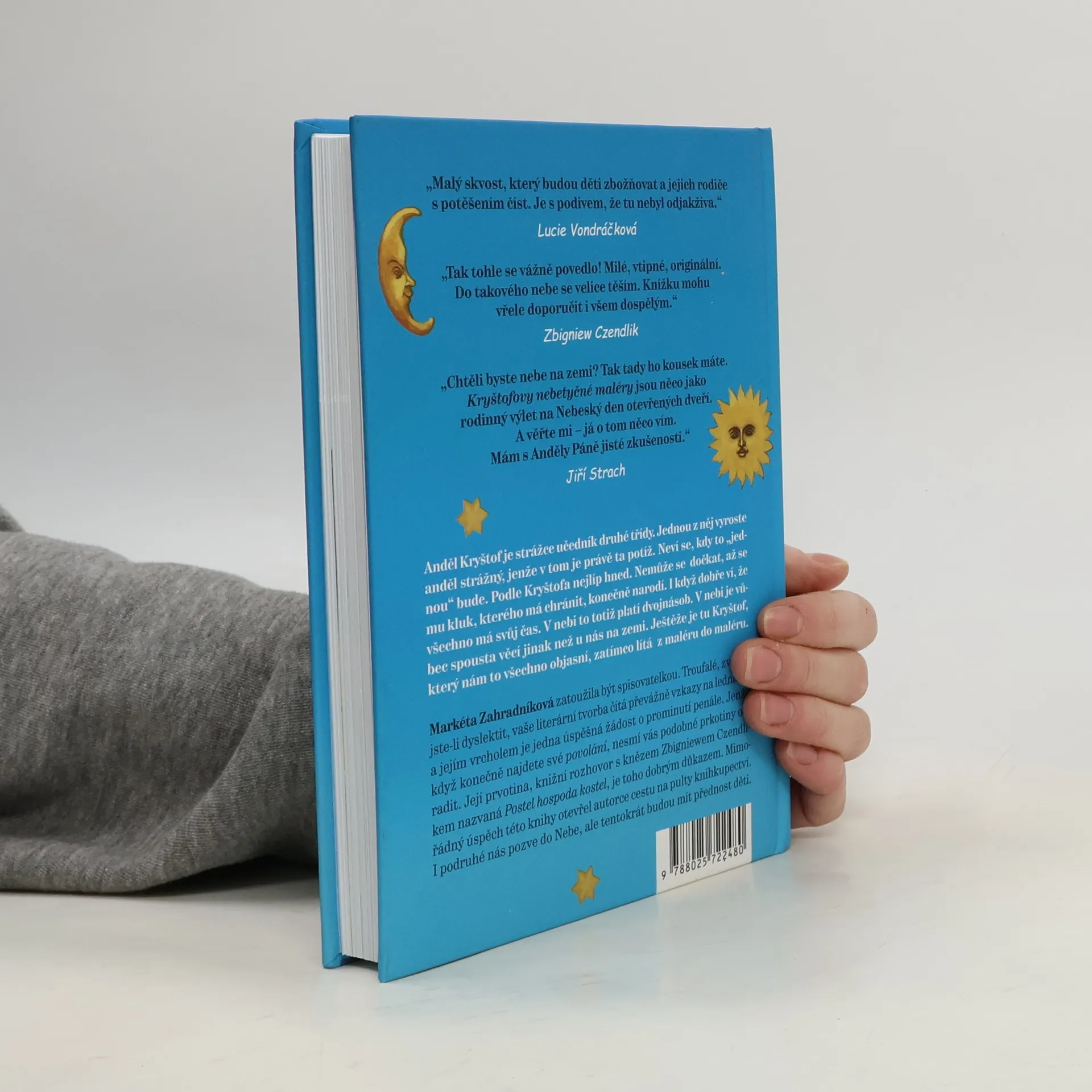 Anděl Kryštof je strážce učedník druhé třídy. Jednou z něj vyroste anděl strážný, jenže v tom je právě ta potíž. Neví se, kdy to „jednou“ bude. Podle Kryštofa nejlíp hned. Nemůže se dočkat, až se mu jeho svěřenec – kluk se stejným jménem – konečně narodí. Všechno má totiž svůj čas, což v nebi platí dvojnásob. V nebi je vůbec spousta věcí jinak než dole na zemi. Naštěstí je tu Kryštof, který nám to všechno stihne objasnit, zatímco lítá z maléru do maléru. Nejspíš budete vejrat, zírat nebo čubrnět, protože má pro vás ty nejžhavější nebeské novinky. Zkrátka pokud ještě nemáte vlastní nebe, doporučuji navštívit to Kryštofovo ve veselých příbězích o trampotách jednoho malého raubíře, který je shodou okolností budoucí anděl strážný. Na místě je však varování – toto vyprávění nemá uspávat, ale probouzet.