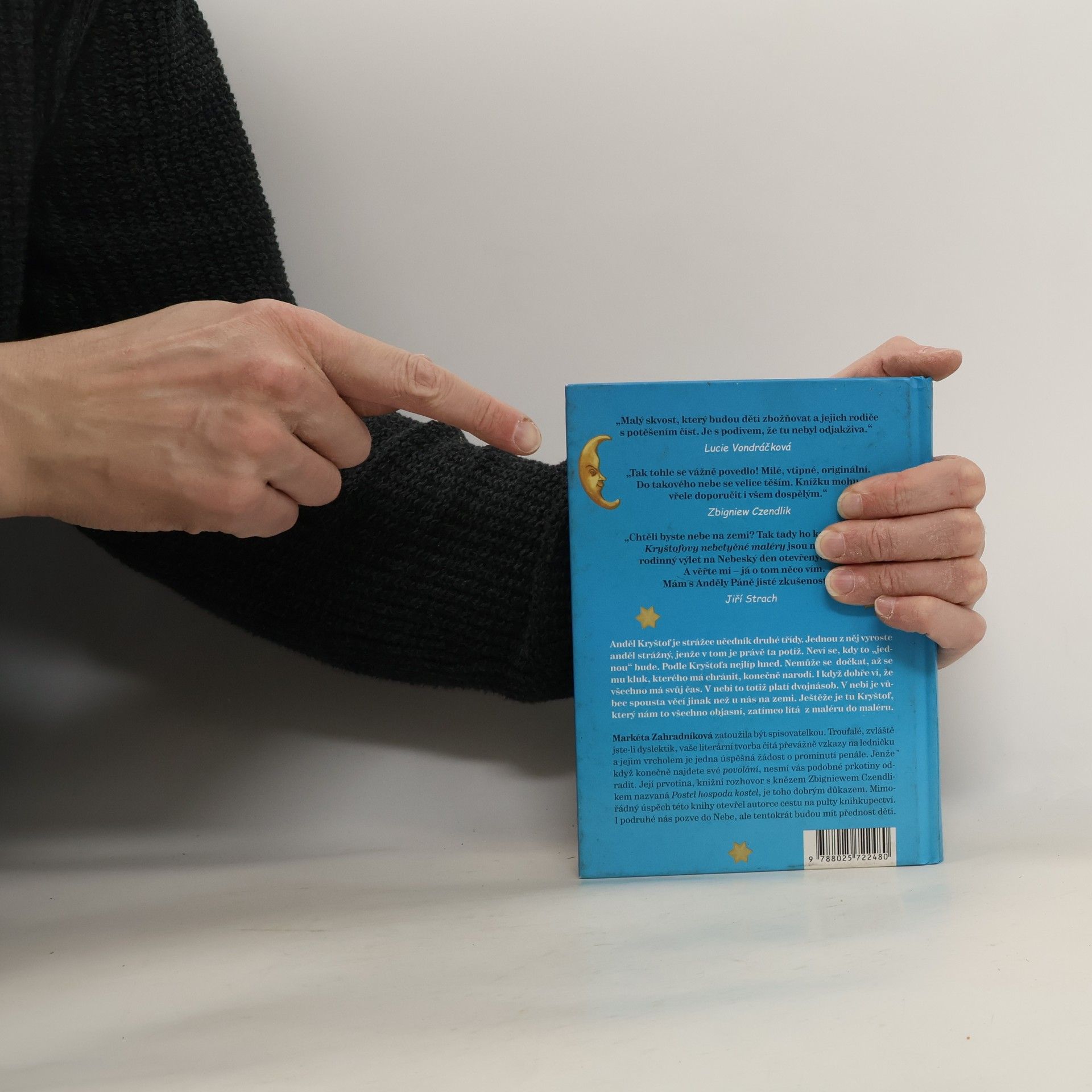 Anděl Kryštof je strážce učedník druhé třídy. Jednou z něj vyroste anděl strážný, jenže v tom je právě ta potíž. Neví se, kdy to „jednou“ bude. Podle Kryštofa nejlíp hned. Nemůže se dočkat, až se mu jeho svěřenec – kluk se stejným jménem – konečně narodí. Všechno má totiž svůj čas, což v nebi platí dvojnásob. V nebi je vůbec spousta věcí jinak než dole na zemi. Naštěstí je tu Kryštof, který nám to všechno stihne objasnit, zatímco lítá z maléru do maléru. Nejspíš budete vejrat, zírat nebo čubrnět, protože má pro vás ty nejžhavější nebeské novinky. Zkrátka pokud ještě nemáte vlastní nebe, doporučuji navštívit to Kryštofovo ve veselých příbězích o trampotách jednoho malého raubíře, který je shodou okolností budoucí anděl strážný. Na místě je však varování – toto vyprávění nemá uspávat, ale probouzet.