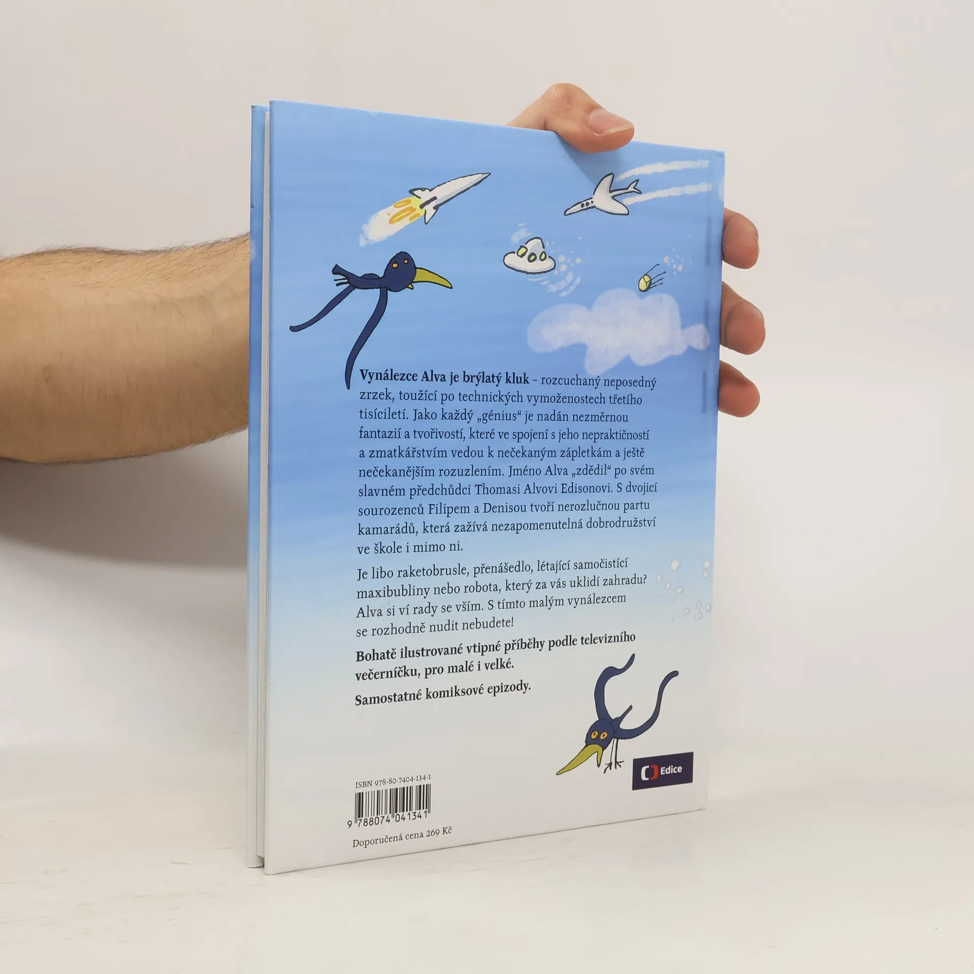 Je libo raketobrusle, přenášedlo, létající samočistící maxibubliny nebo robota, který za vás uklidí zahradu? Alva si ví rady se vším. S tímto vynálezcem se rozhodně nudit nebudete! Vynálezce Alva je brýlatý kluk – rozcuchaný neposedný zrzek, toužící po technických vymoženostech třetího tisíciletí. Jméno Alva „zdědil“ po svém slavném předchůdci T. A. Edisonovi. Jako každý génius je nadán nezměrnou fantazií a tvořivostí, které ve spojení s jeho nepraktičností a zmatkářstvím vedou k nečekaným zápletkám a ještě nečekanějším rozuzlením. S dvojicí sourozenců Filipem a Denisou tvoří nerozlučnou partu kamarádů, která zažívá neuvěřitelná dobrodružství ve škole i mimo ni. Náš příběh začíná první školní den… Bohatě ilustrované vtipné příběhy podle televizního večerníčku, pro malé i velké.