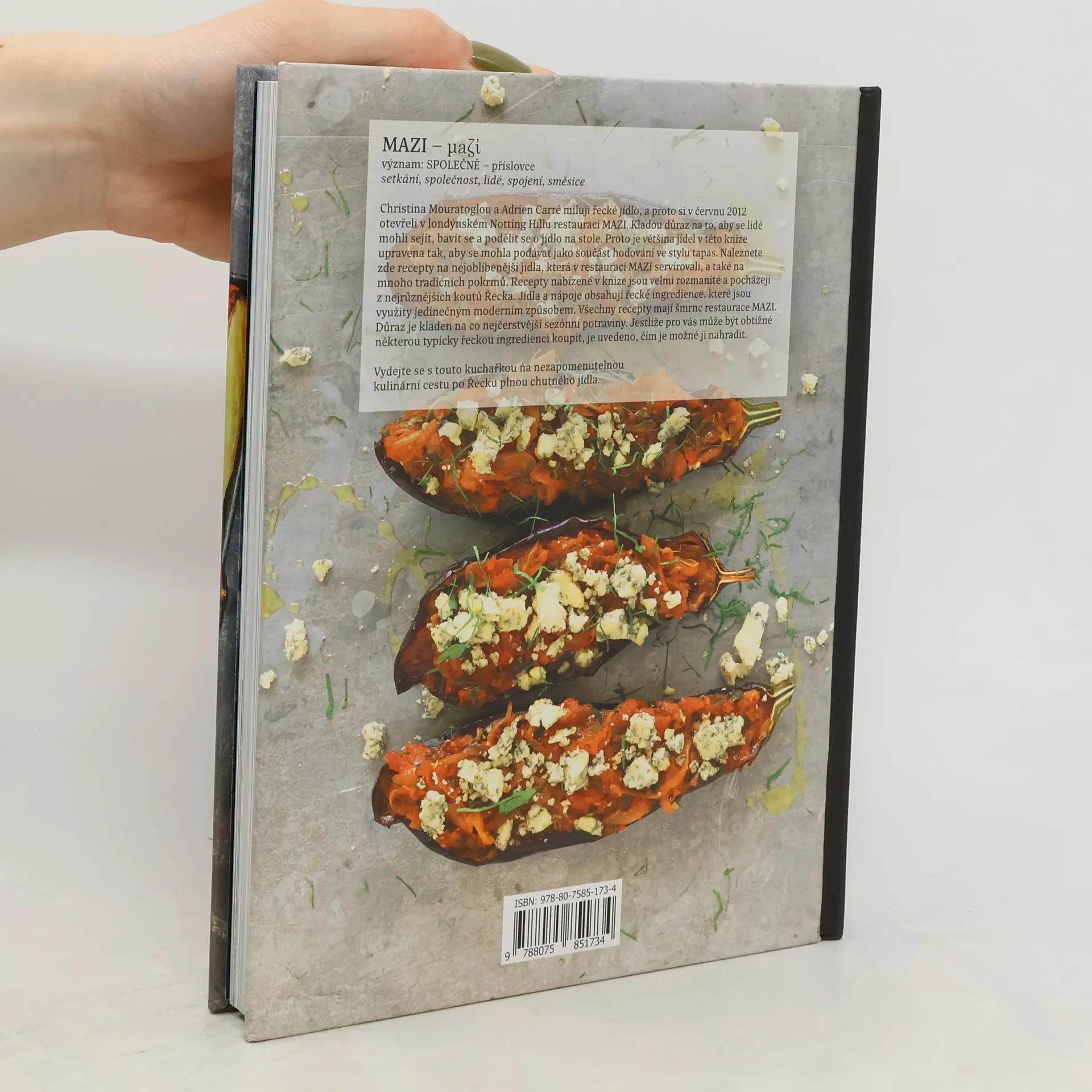 Christina Mouratoglou a Adrien Carré milují řecké jídlo, a proto si v červnu 2012 otevřeli v londýnském Notting Hillu restauraci MAZI. Kladou důraz na to, aby se lidé mohli sejít, bavit se a podělit se o jídlo na stole. Proto je většina jídel v této kniha upravena tak, aby se mohla podávat jako součást hodování ve stylu tapas. Naleznete zde recepty na nejoblíbenější jídla, která v restauraci MAZI servírovali, a také na mnoho tradičních pokrmů.