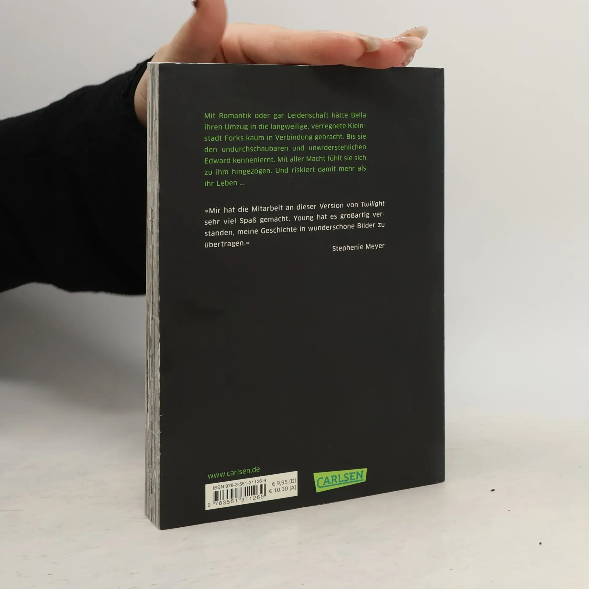 In "Twilight: Biss zum Morgengrauen - der Comic" verwandelte die koreanische Zeichnerin Young Kim Stephenie Meyers Worte in eine packende Comicgeschichte, die in stimmungsvollen Bildern von Bellas und Edwards Leben in Forks erzählt. Mit Romantik oder gar Leidenschaft hätte Bella ihren Umzug nach Forks, einer langweiligen, ständig verregneten Kleinstadt in Washington State, kaum in Verbindung gebracht. Bis sie den geheimnisvollen und attraktiven Edward kennen lernt. Er fasziniert sie, obwohl irgendetwas mit ihm nicht zu stimmen scheint. So gut aussehend und stark wie er kann kein gewöhnlicher Mensch sein. Aber was ist er dann? Die Geschichte einer verbotenen Liebe, einer Liebe gegen alle Vernunft. Die so viele Hindernisse überwinden muss, dass man auf jeder Seite mitfiebert. So romantisch und spannend, dass dem Leser bei diesem wunderschön geschriebenen Buch eine Gänsehaut über den Rücken läuft. Der zweite, abschließende Band ist bereits in Vorbereitung.