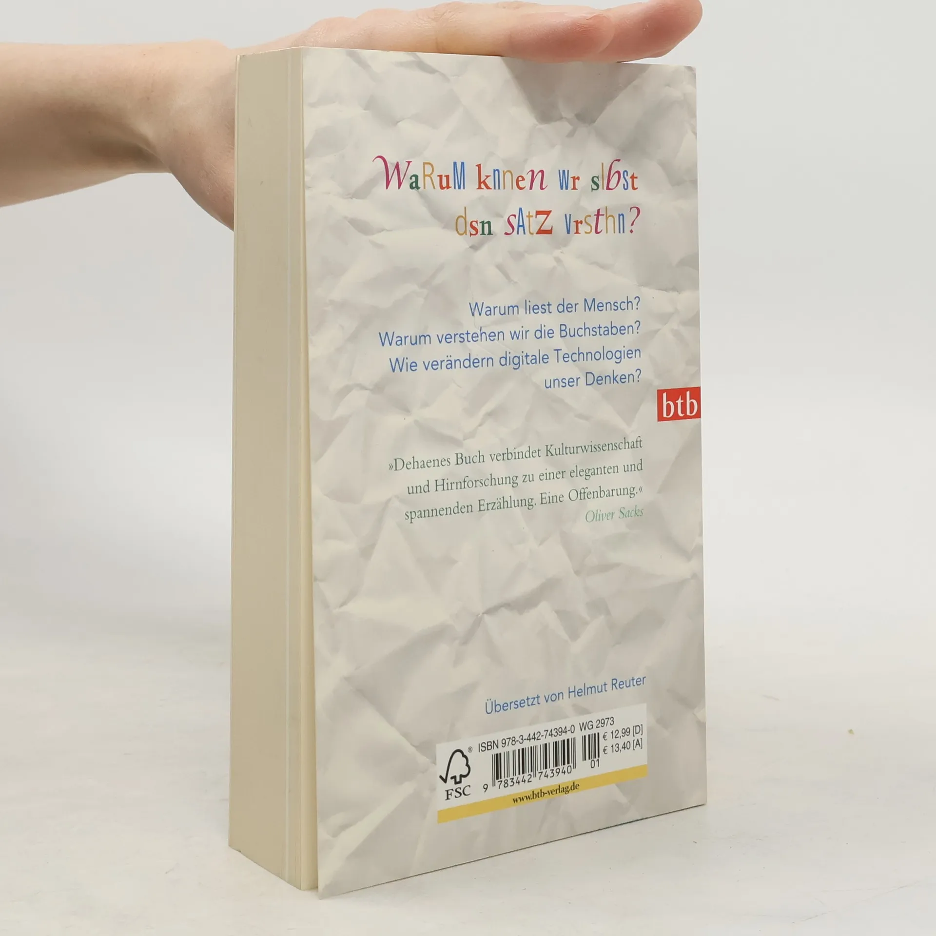 Ein Muss für alle, die das Lesen lieben WaruM knnen wr slbst dsn sAtZ vrsthn? Schwarze Zeichen auf weißem Papier und dennoch wird in Sekundenbruchteilen ein ganzes Universum von Bedeutungen erschaffen. Der renommierte Kognitionswissenschaftler Stanislas Dehaene unternimmt einen aufregenden Streifzug durch die Landschaft in unseren Köpfen und beantwortet alle Fragen rund ums Lesen: Wie geht Lesen? Warum verstehen wir die Buchstaben? Warum gibt es Legasthenie? Und warum liest der Mensch überhaupt? Ausstattung: mit farbigen Abb.