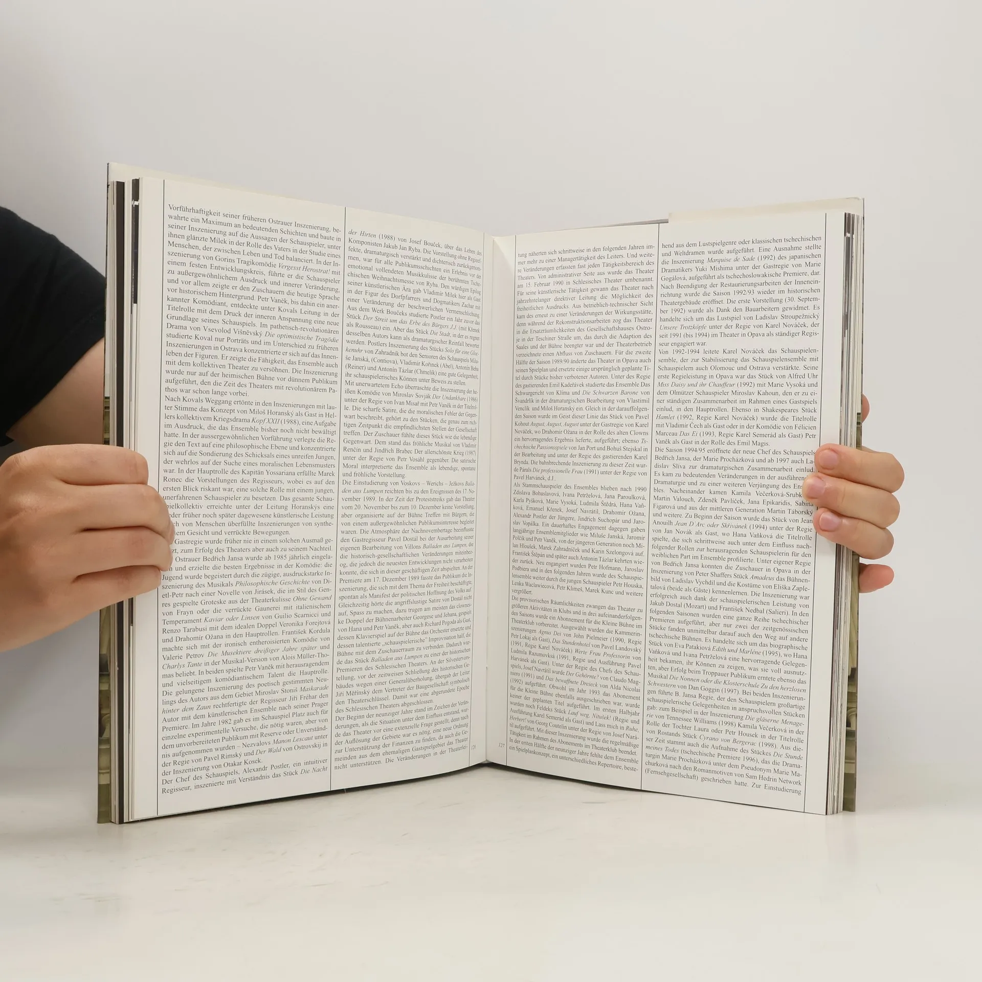 Česky, německy a anglicky. Komentovaný obrazový 3 jazyčný průřez výstavbou a provozem divadla v Opavě.