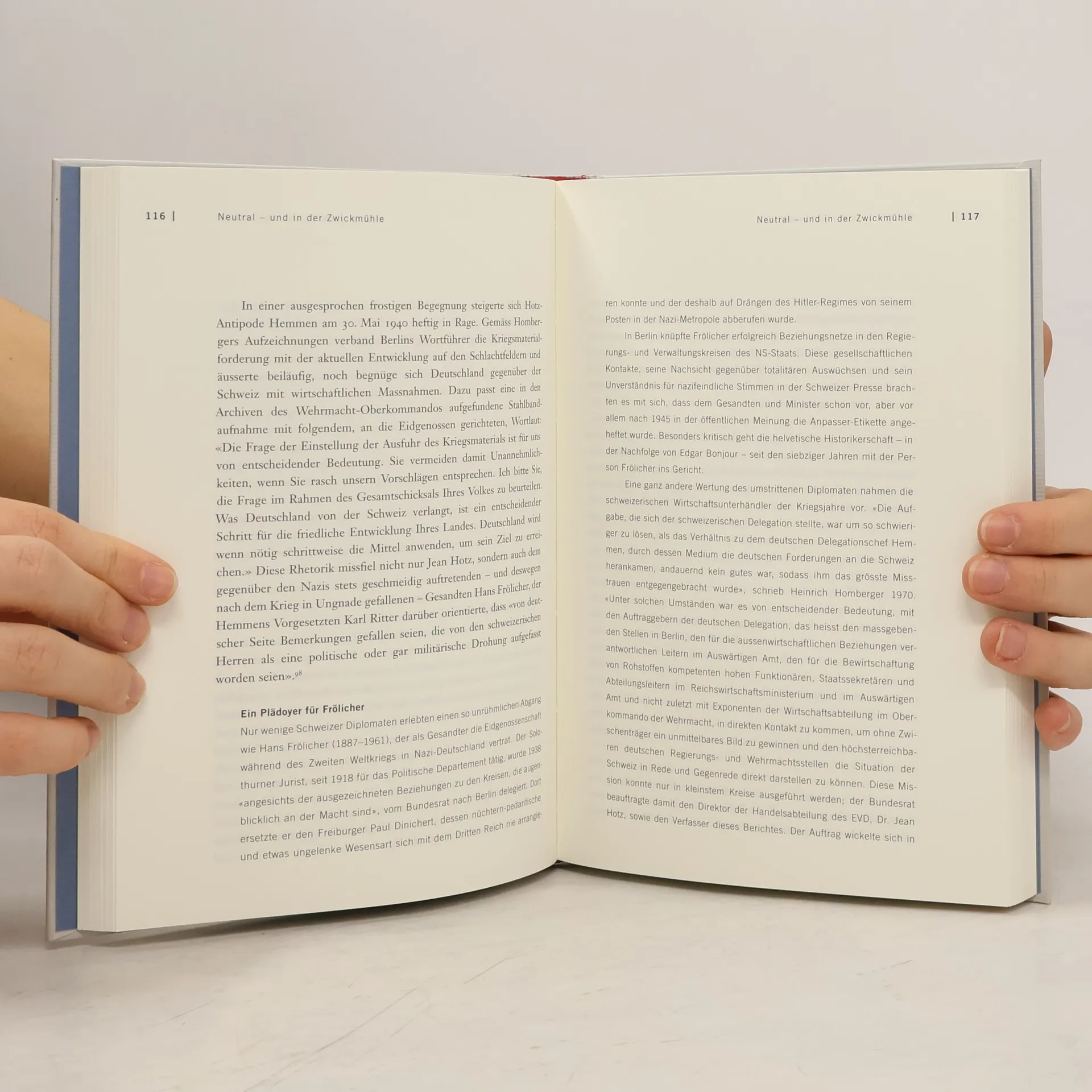 Die Biografie über Minister Jean Hotz widmet sich dem profiliertesten Schweizer Handelsdiplomaten während des Zweiten Weltkriegs. Die dem Hitler-Regime abgerungenen Wirtschaftsverträge sicherten der eingeschnürten Schweiz die bestmögliche ökonomische Freiheit. Der Bauernsohn Hotz (1890 −1969) stammte aus einfachen Verhältnissen und absolvierte auf dem zweiten Bildungsweg ein Ökonomiestudium. Von 1935 bis 1954 stand er der Handelsabteilung der Eidgenossenschaft vor. Daneben leitete er die Ständige Delegation des Bundesrates für Wirtschaftsverhandlungen mit dem Ausland. Die von den Zeitgenossen mit grosser Dankbarkeit beurteilte Tätigkeit des charakterstarken Hotz im Zangengriff der kriegführenden Blöcke geriet in der historischen Aufarbeitung durch die Bergier-Kommission 1995 ins Zwielicht.