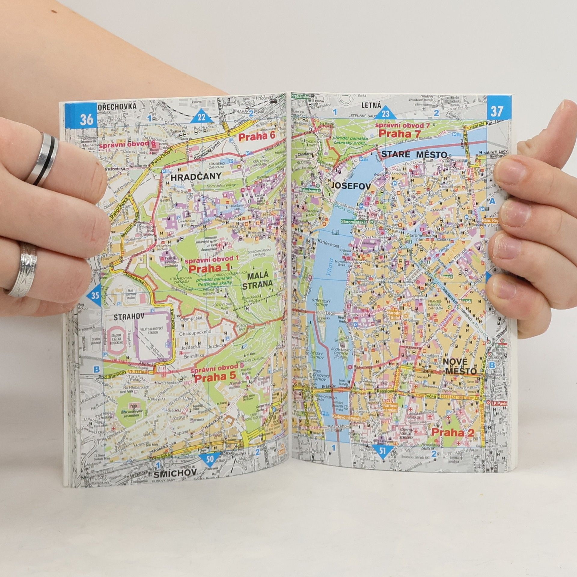 Kapesní vydání atlasu Prahy je ideálním společníkem pro každodenní cesty, ale i pro občasné výlety. Svými rozměry se vejde do každé kabelky nebo pánské kapsy a naleznete v něm téměř celé území našeho hlavní města. V novém vydání jsme opět zapracovali čitelnost mapy, ale samozřejmě nezapomínáme ani na aktuálnost a úplnost mapových podkladů. Mapový obsah je aktualizovaný k červenci 2014, s novými názvy ulic i značkovou náplní a s nejnovějšími změnami v dopravě. Nejvýznamnější pamětihodnosti jsou v mapce středu města vyznačeny piktogramy. Vysvětlivky jsou zpracovány v šesti jazycích (česky, anglicky, německy, francouzsky, italsky a rusky). 74 mapových stran atlasu města, 4 strany podrobného plánu centra města, rejstřík ulic, důležité kontakty, plán metra.