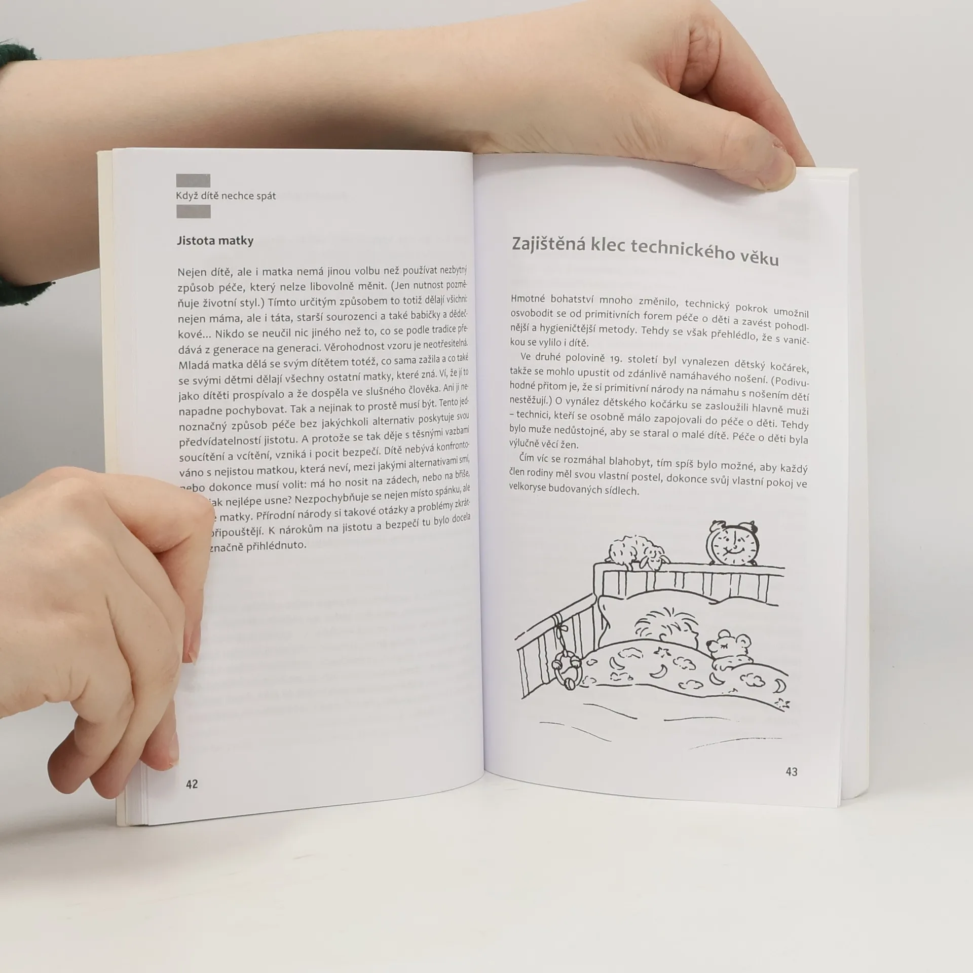 Bezesné noci, které rodiče tráví nekonečnými pokusy o uspání svých dětí, bývají velkým problémem v mnoha rodinách. Známá dětská psycholožka Jiřina Prekopová přináší ve své knize užitečná doporučení, jak mohou rodiče svým dětem trpícím nespavostí zajistit klidný spánek. Autorka vychází ze svého přesvědčení, že pro dítě je ke spánku důležitý pocit jistoty. Potřebuje důvěrně známé místo, na kterém je zvyklé usínat, navyklou polohu těla, oblíbený způsob hlazení… Změny na dítě nepůsobí dobře. Kniha je praktickým rádcem, poskytuje mnohé podněty a zároveň upozorňuje rodiče na chybné kroky, kterých se mohou v souvislosti se spánkem dětí dopustit. Je určena rodičům dětí od nejútlejšího věku.