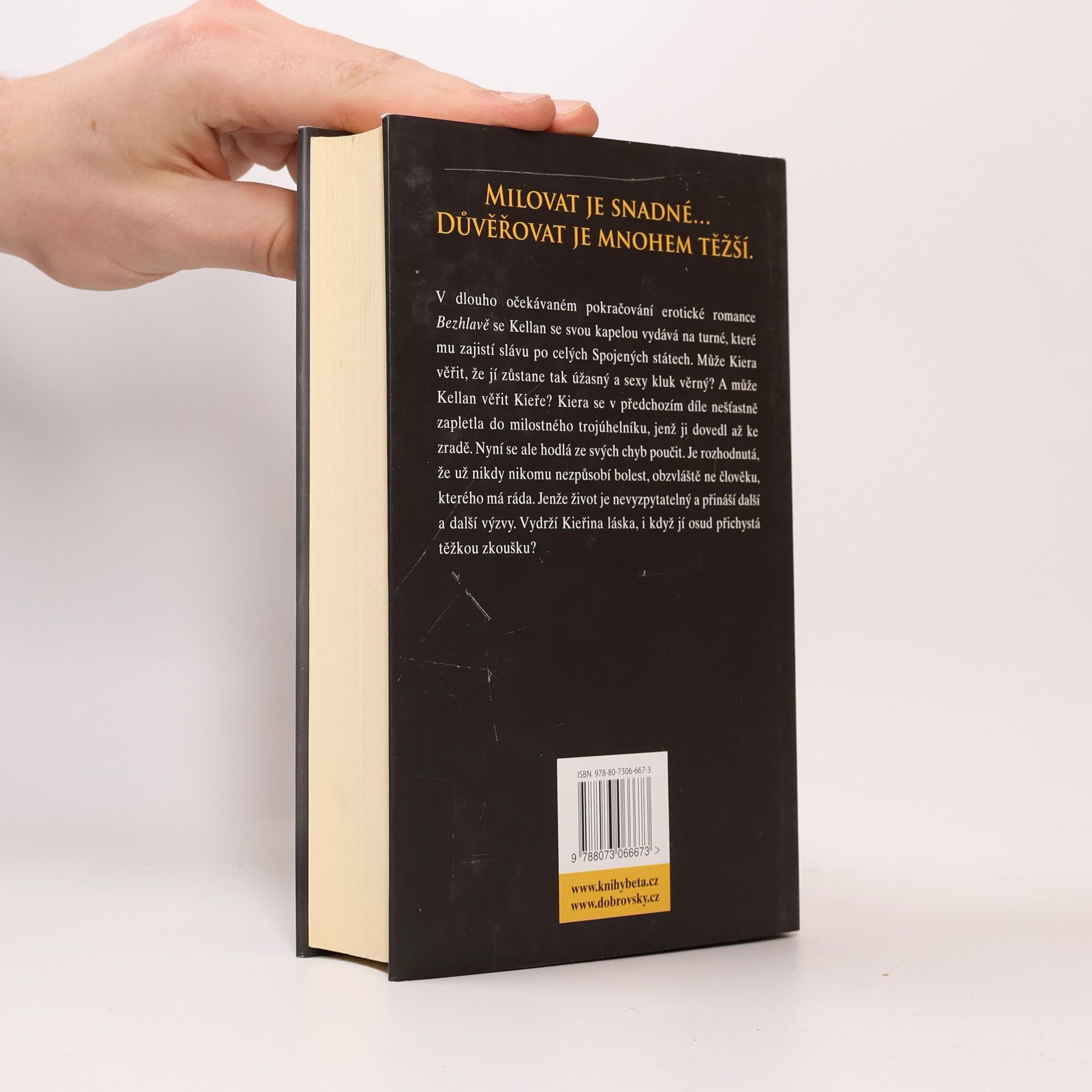 Ve strhujícím pokračování knihy Bezhlavě se Kellan se svou kapelou vydává na turné, které mu zajistí slávu po celých Spojených státech. Může Kiera věřit, že jí zůstane tak úžasný a sexy muž věrný? A může Kellan věřit Kieře? Kiera je rozhodnutá už nikomu nezpůsobit bolest, zvlášť člověku, kterého miluje. Jenže život je nevyzpytatelný a přináší další výzvy. Vydrží jejich láska, i když jim osud přichystá těžkou zkoušku? Důvěřovat je mnohem těžší, než milovat.