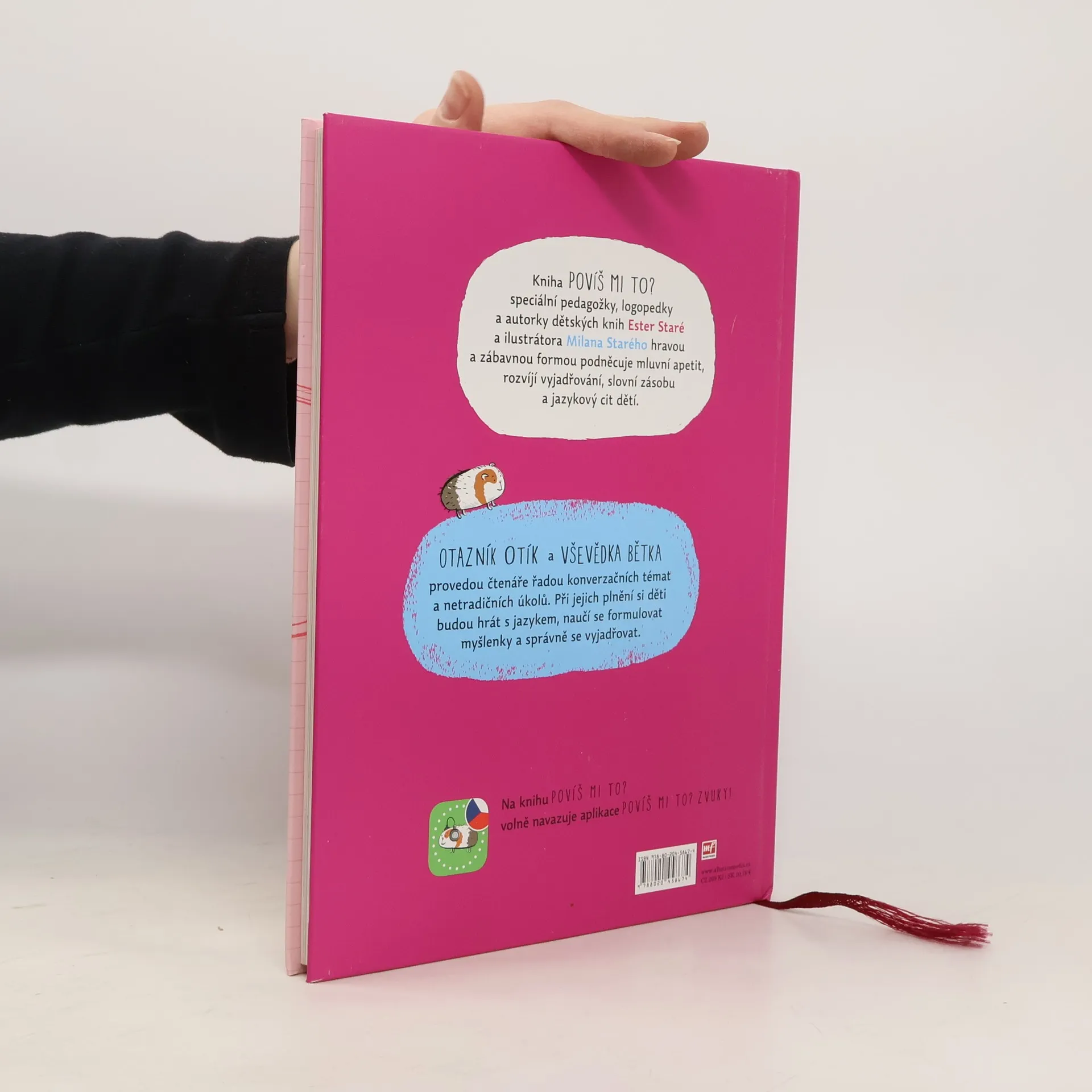 Kniha speciální pedagožky, logopedky a autorky dětských knih Ester Staré a ilustrátora Milana Starého nenásilně a zábavnou formou podněcuje mluvní apetit, rozvíjí vyjadřovací schopnosti, slovní zásobu a jazykový cit dítěte. Děti se prostřednictvím rozmanitých konverzačních témat a netradičních úkolů učí utřídit si a zformulovat myšlenky, hrát si s jazykem a správně se vyjadřovat. Bohatě ilustrovaná kniha vybízí k mluvení i svou grafickou podobou. Publikace je určena jak dětem a jejich rodičům, tak i logopedům a učitelům. V závěru jsou zařazeny stručné poznámky, které rodiče procvičovanou problematikou provedou a poradí jim, jak s knihou správně pracovat.