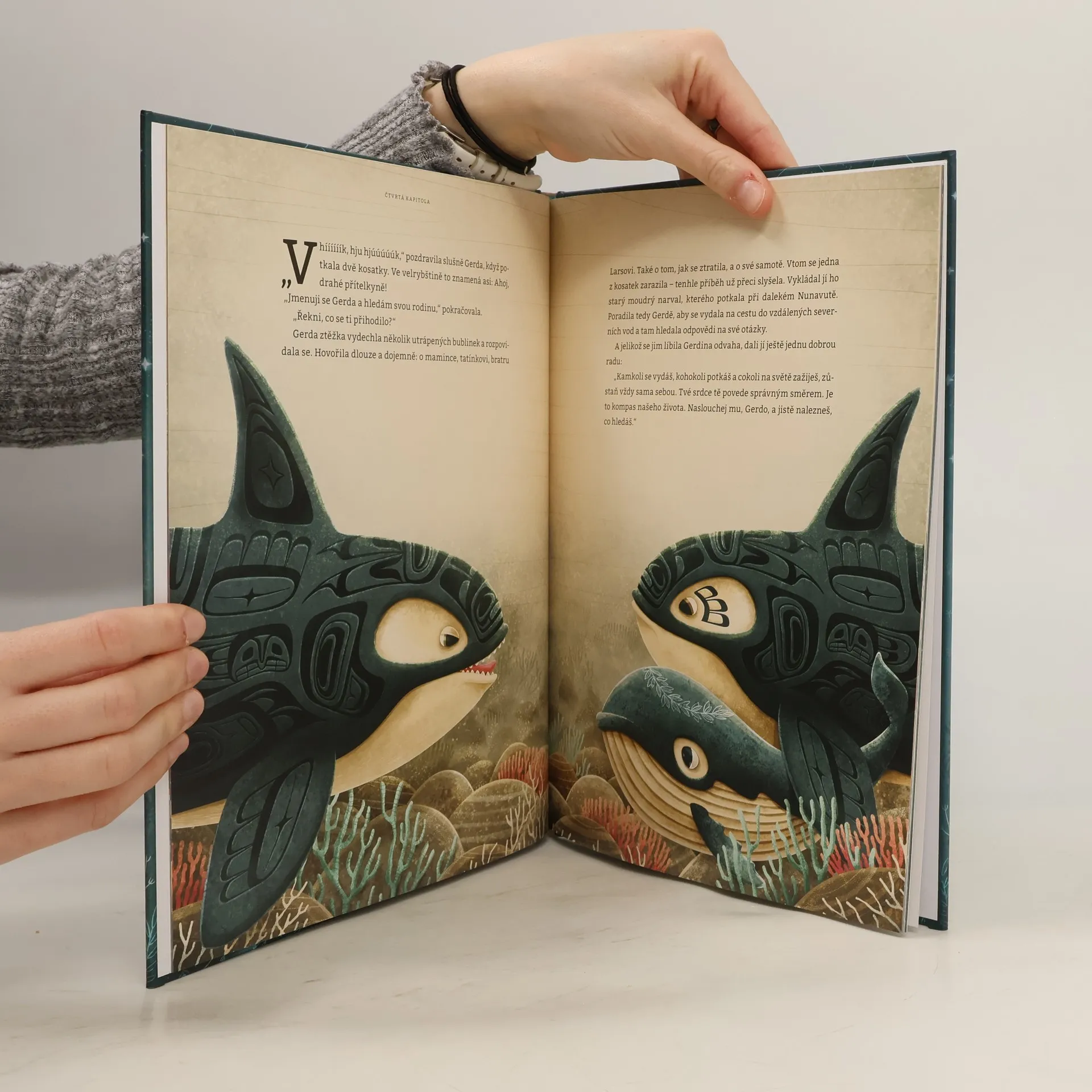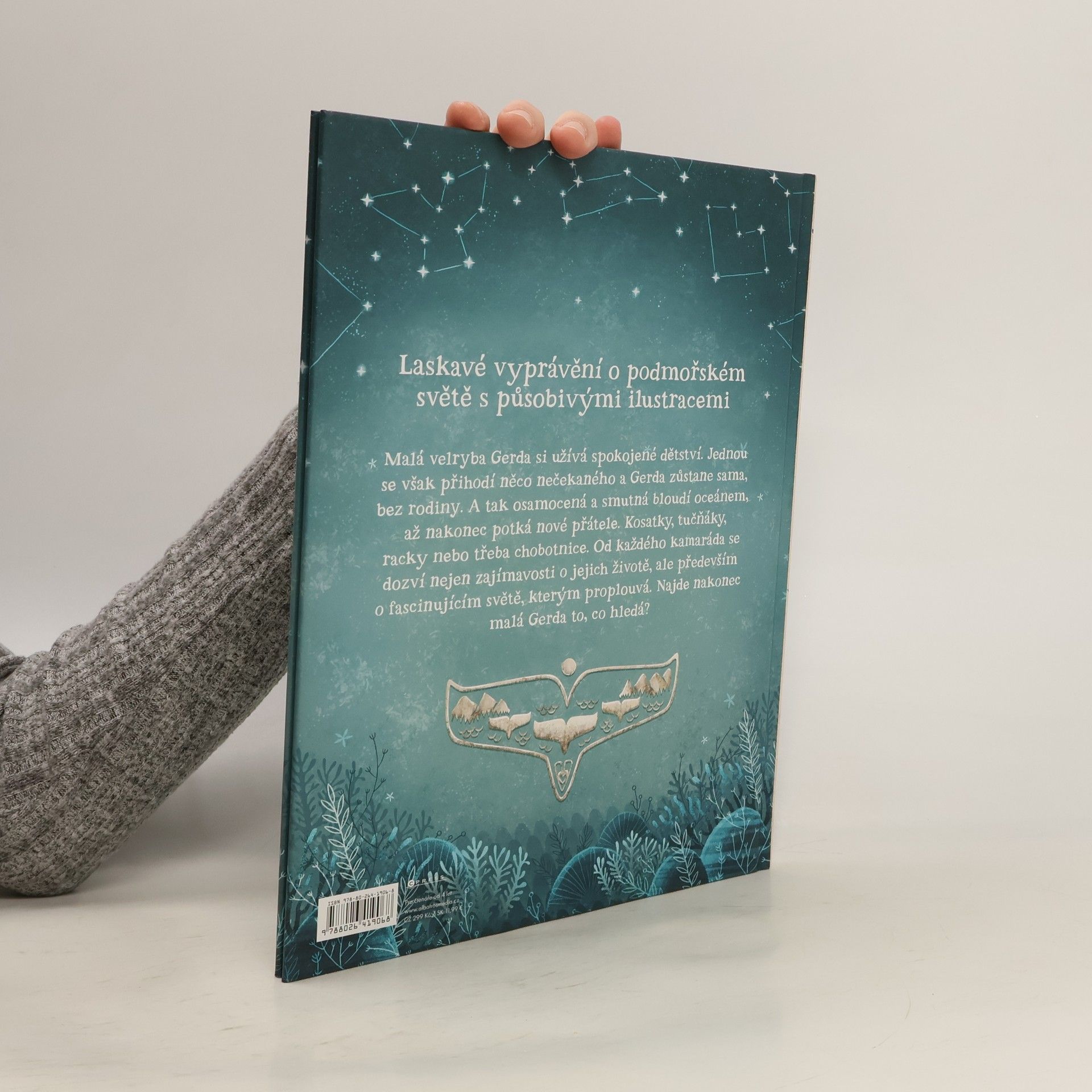 Laskavé vyprávění o podmořském světě s působivými ilustracemi. Malá velryba Gerda si užívá spokojené dětství. Jednou se však přihodí něco nečekaného a Gerda zůstane sama, bez rodiny. A tak osamocená a smutná bloudí oceánem, až nakonec potká nové přátele. Kosatky, tučňáky, racky nebo třeba chobotnice. Od každého kamaráda se dozví nejen zajímavosti o jejich životě, ale především o fascinujícím světě, kterým proplouvá. Najde nakonec malá Gerda to, co hledá?
