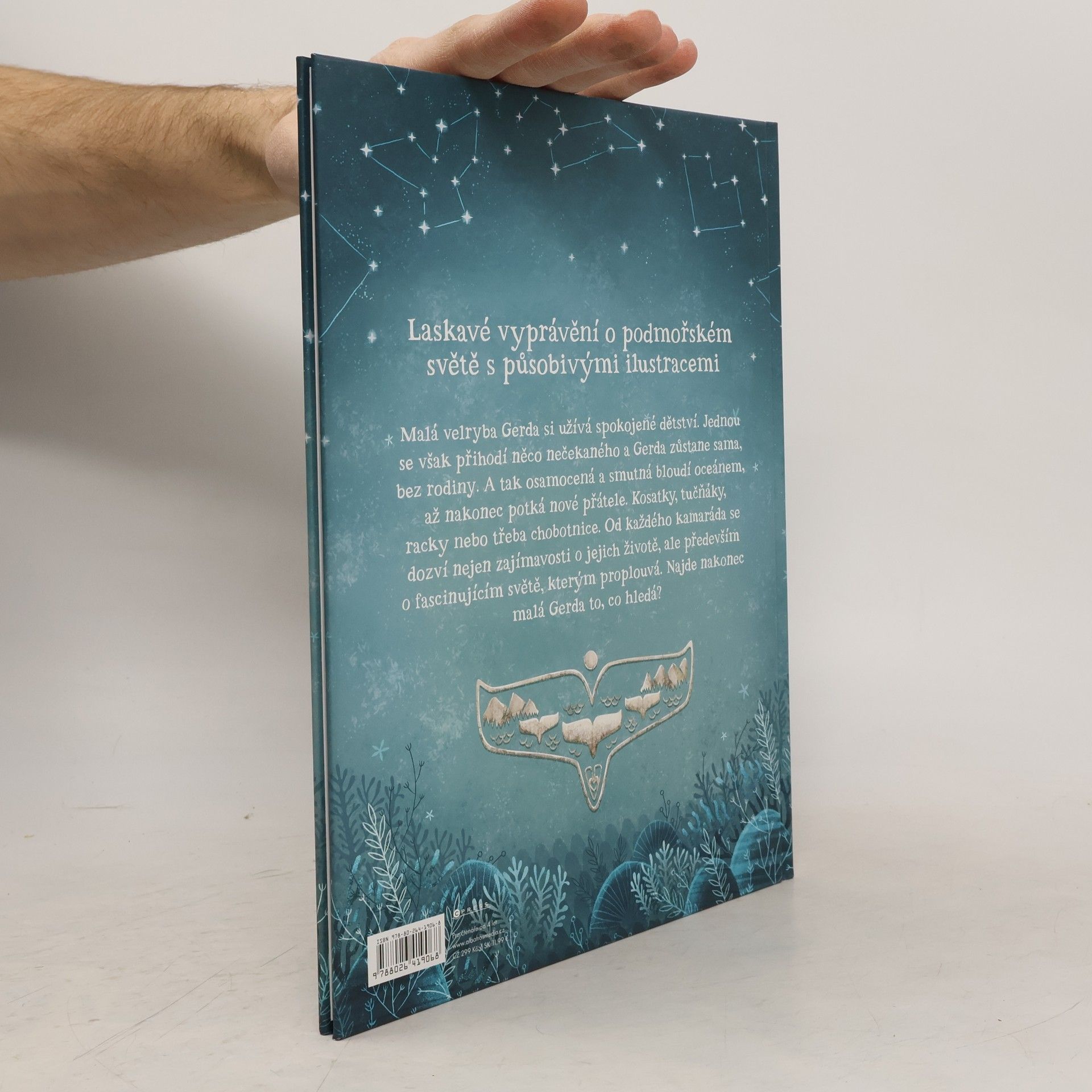 Laskavé vyprávění o podmořském světě s působivými ilustracemi. Malá velryba Gerda si užívá spokojené dětství. Jednou se však přihodí něco nečekaného a Gerda zůstane sama, bez rodiny. A tak osamocená a smutná bloudí oceánem, až nakonec potká nové přátele. Kosatky, tučňáky, racky nebo třeba chobotnice. Od každého kamaráda se dozví nejen zajímavosti o jejich životě, ale především o fascinujícím světě, kterým proplouvá. Najde nakonec malá Gerda to, co hledá?