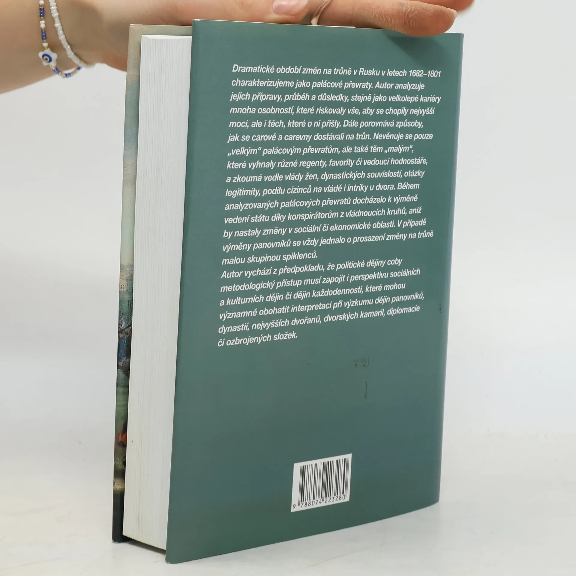 Dramatické období změn na trůně v Rusku v letech 1682-1801 charakterizujeme jako palácové převraty. Autor analyzuje jejich přípravy, průběh a důsledky, stejně jako velkolepé kariéry mnoha osobností, které riskovaly vše, aby se chopily nejvyšší moci, ale i těch, které o ni přišly. Dále porovnává způsoby, jak se carové a carevny dostávali na trůn. Nevěnuje se pouze "velkým" palácovým převratům, ale také těm "malým", které vyhnaly různé regenty, favority či vedoucí hodnostáře, a zkoumá vedle vlády žen, dynastických souvislostí, otázky legitimity, podílu cizinců na vládě i intriky u dvora. Autor vychází z předpokladu, že politické dějiny coby metodologický přístup musí zapojit i perspektivu sociálních a kulturních dějin každodennosti, které mohou významně obohatit interpretaci při výzkumu dějin panovníků, dynastií, nejvyšších dvořanů, dvorských kamaril, diplomacie či ozbrojených složek.