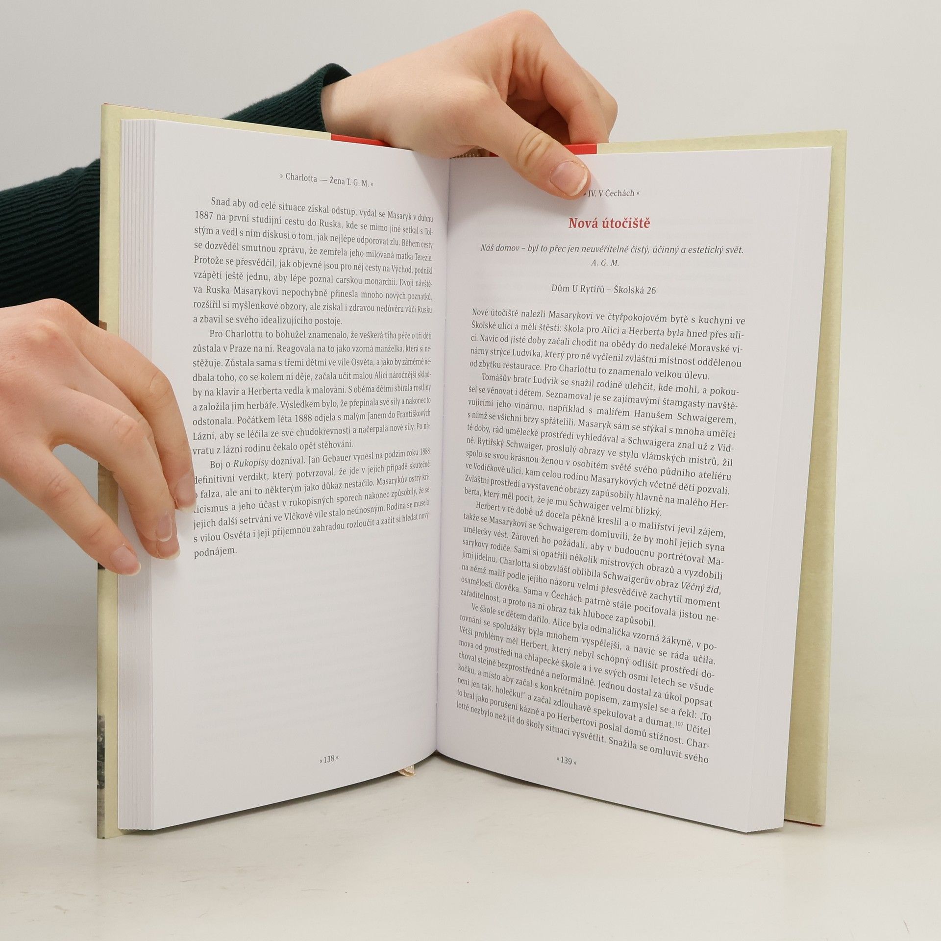 Masarykovi byli moderní pár. Oba byli velcí idealisté, přemýšliví, kosmopolitní. Rebelovali v oblasti náboženství, manželství i výchovy dětí. Ne všechno, ale tehdejší společnost dokázala přijmout. TG Masaryk se dokázal povznést nad malost poměrů a směřovat výše, proto si prozíravě vybral ženu, která pro něj byla neustálou výzvou i inspirací. Byla pro něj také ztělesněním jiné kultury, ukazovala mu možnosti nového sociálního uspořádání. Především byla ale jeho věrnou oporou a pomocnicí, která jej nikdy nezradila. Byla jeho velkou láskou, bílou růží, jak ji nazýval. To Charlotta mu v zásadních chvílích, kdy chtěl emigrovat z Čech do ciziny, jasně řekla: „Ty musíš zůstat! Tvé místo je tady!“ Jaká byla? Charlotta byla ženou mnoha paradoxů. Byla světicí i rebelkou, myslitelkou i příliš hodnou mámou. Snažila se v sobě spojit nespojitelné, zvládnout nároky dvou světů, světa konzervativního a světa moderního. Tříštila se v aktivitách pro své čtyři děti, z těch sil, co jí zbyly, pomáhala Tomáši Garrigue Masarykovi v mnoha jeho činnostech a trpěla pochybami při srovnání s ním. Jen málo energie jí zbylo na vlastní zájmy, přesto si však našla čas i pro sociální práci a práci v ženském hnutí. S jistou nadsázkou se dá říci, že Masaryk a jejich vize pro ni byli jejím životním dílem. Kde ho jiní opouštěli, ona zůstávala.