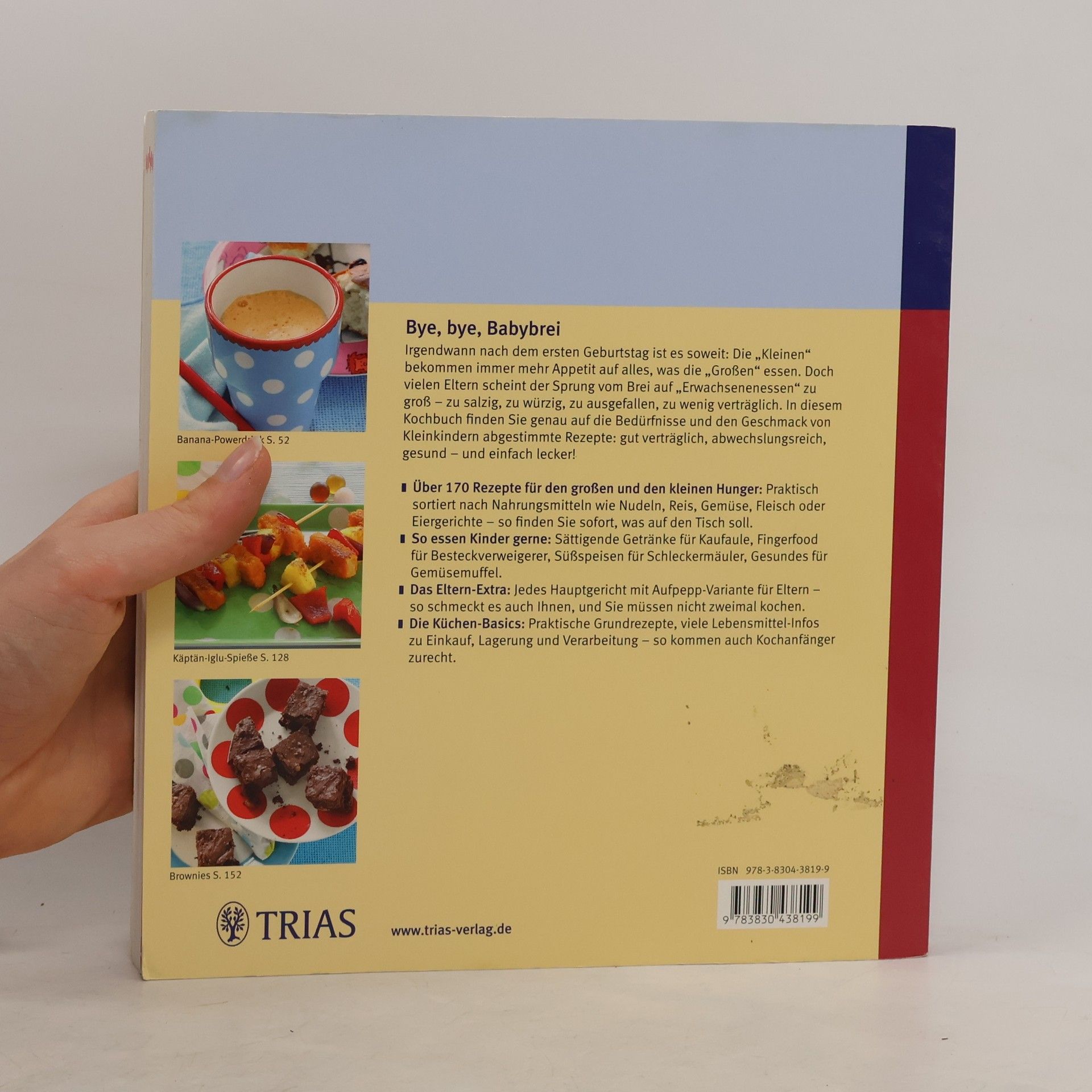 Bye, bye, Babybrei Irgendwann nach dem ersten Geburtstag ist es soweit: Die „Kleinen“ bekommen immer mehr Appetit auf alles, was die „Großen“ essen. Doch vielen Eltern scheint der Sprung vom Brei auf „Erwachsenenessen“ zu groß - zu salzig, zu würzig, zu ausgefallen, zu wenig verträglich. In diesem Kochbuch finden Sie genau auf die Bedürfnisse und den Geschmack von Kleinkindern abgestimmte Rezepte: gut verträglich, abwechslungsreich, gesund - und einfach lecker! Über 170 Rezepte für den großen und den kleinen Hunger: Praktisch sortiert nach Nahrungsmitteln wie Nudeln, Reis, Gemüse, Fleisch oder Eiergerichte - so finden Sie sofort, was auf den Tisch soll. So essen Kinder gerne: Sättigende Getränke für Kaufaule, Fingerfood für Besteckverweigerer, Süßspeisen für Schleckermäuler, Gesundes für Gemüsemuffel. Das Eltern-Extra: Jedes Hauptgericht mit Aufpepp-Variante für Eltern - so schmeckt es auch Ihnen, und Sie müssen nicht zweimal kochen. Die Küchen-Basics: Praktische Grundrezepte, viele Lebensmittel-Infos zu Einkauf, Lagerung und Verarbeitung - so kommen auch Kochanfänger zurecht. Anne Iburg ist Ökotrophologin und lebt in Kaiserslautern. Von ihr sind bei TRIAS mehrere Ratgeber zu Ernährungsthemen erschienen. Darunter das sehr erfolgreiche „Die besten Breie für Ihr Baby“ oder „Mama-Food“ und „Köstlich essen - Cholesterin senken“.