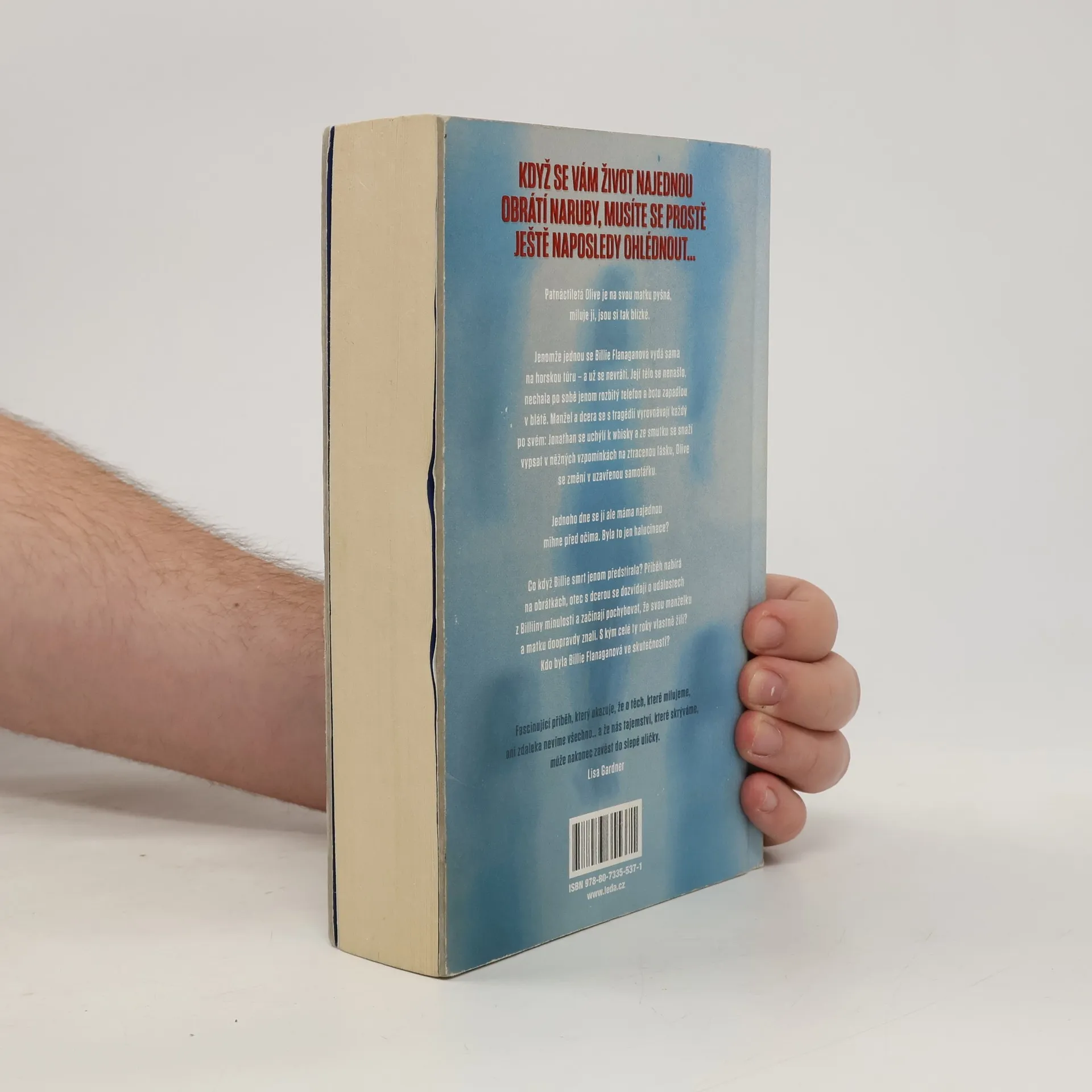 Před rokem se Billie Flanaganová vydala sama na horskou túru – a od té doby ji nikdo nespatřil. Záchranáři našli jen její rozbitý mobil a jednu pohorku, tělo ale ne. Manžela a dospívající dceru tragédie těžce zasáhne – Jonathan hledá útěchu v občasném pití, Olive se propadá do osamělosti a pronásledují ji podivné vidiny a halucinace, jako by její matka byla stále naživu. Její otec má o trápení víc… a vtom náhodou narazí na tajemství z minulosti, které před ním Billie dokázala skrýt. Jeho představy o vlastní ženě se zhroutí. Nakolik ji doopravdy znal? Kdo vlastně Billie Flanaganová byla? Olive se spolu s otcem snaží vypátrat pravdu, a to nejenom o Billie, ale také o sobě samých. Láska je někdy opravdu slepá a to, co nechceme vidět, prostě nevidíme. Zamysleli jsme se někdy nad rozdílem mezi dojmem, který jsme si utvořili o člověku, kterého milujeme, a tím, jaký ve skutečnosti je?