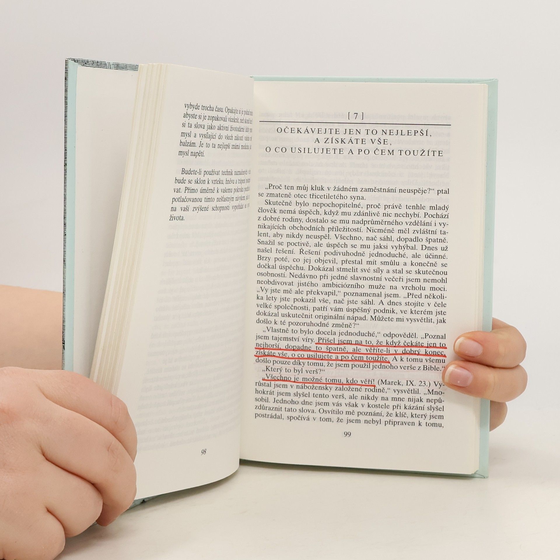Pastor N. Peale, jehož rady a doporučení pomohly změnit dosavadní životy milionů Američanů, čtivým a nenásilným způsobem přibližuje modernímu člověku pravdu Starého a Nového zákona. Vychází přitom z dlouhodobých zkušeností a pravdivost svých tvrzení dokazuje na skutečných příbězích. Právě četba opravdových životních příběhů pomůže čtenáři pochopit, že pozitivní myšlení, které autor doporučuje, vede k úspěšnému a šťastnému životu. První vydání.... celý text
