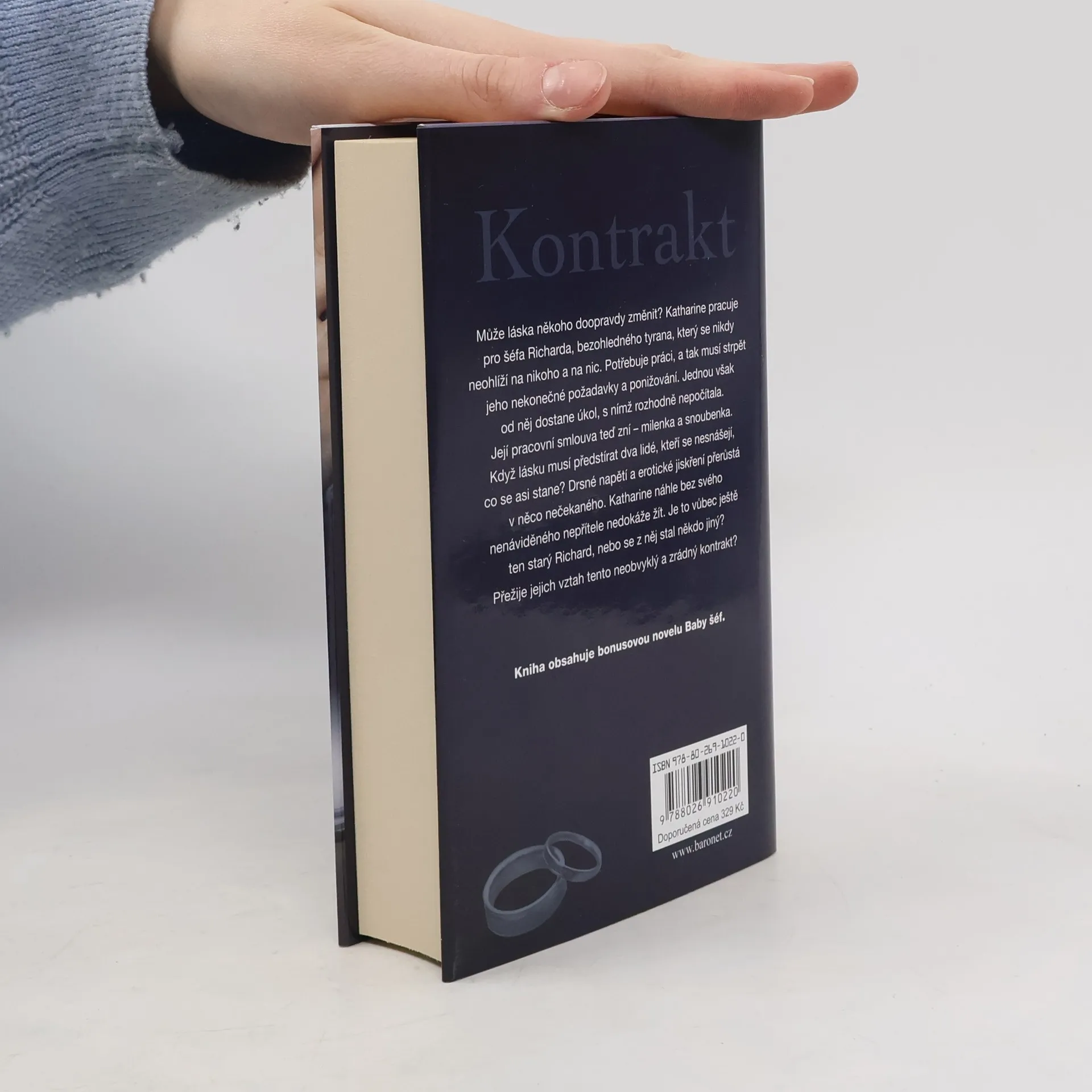 Může láska někoho doopravdy změnit? Katharine pracuje pro šéfa Richarda, bezohledného tyrana, který se nikdy neohlíží na nikoho a na nic. Potřebuje práci, a tak musí strpět jeho nekonečné požadavky a ponižování. Jednou však od něj dostane úkol, s nímž rozhodně nepočítala. Její pracovní smlouva teď zní – milenka a snoubenka. Když lásku musí předstírat dva lidé, kteří se nesnášejí, co se asi stane? Drsné napětí a erotické jiskření přerůstá do něčeho nečekaného. Katharine náhle bez svého nenáviděného nepřítele nedokáže žít. Je to vůbec ještě ten starý Richard, nebo se z něj stal někdo jiný? Přežije jejich vztah tento neobvyklý a zrádný kontrakt? Kniha obsahuje bonusovou novelu Baby šéf.