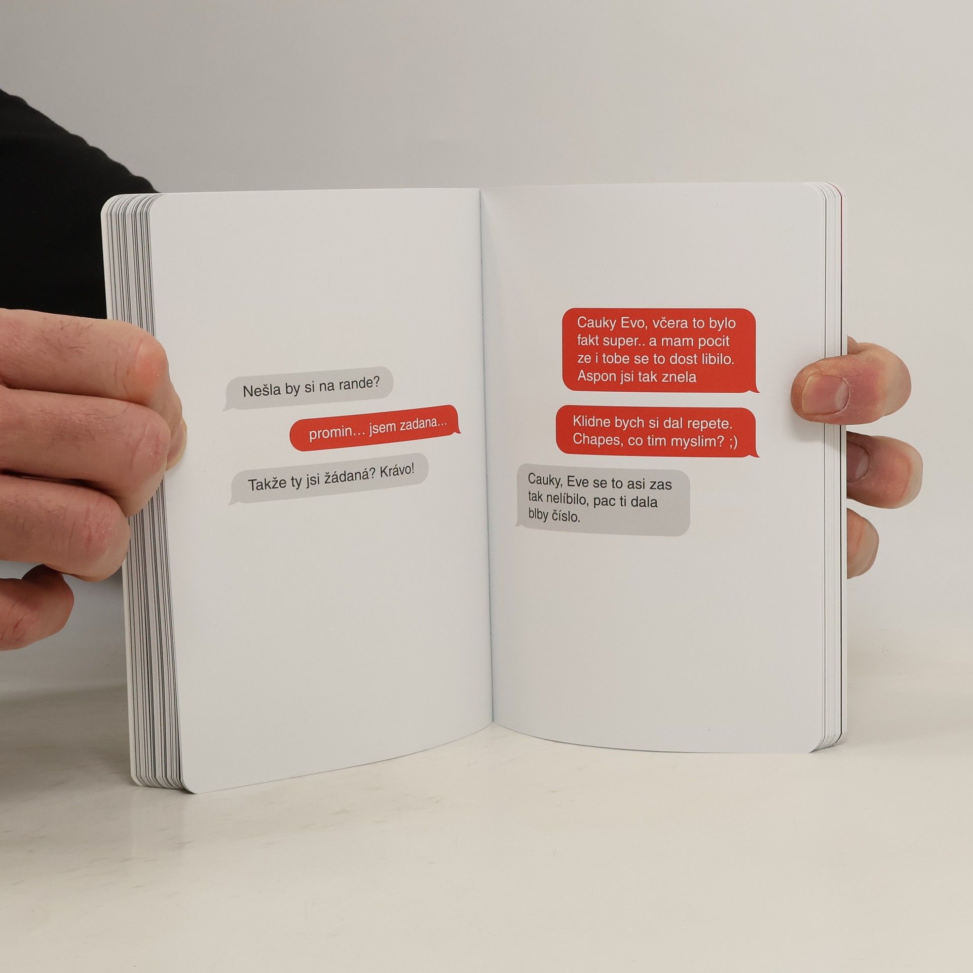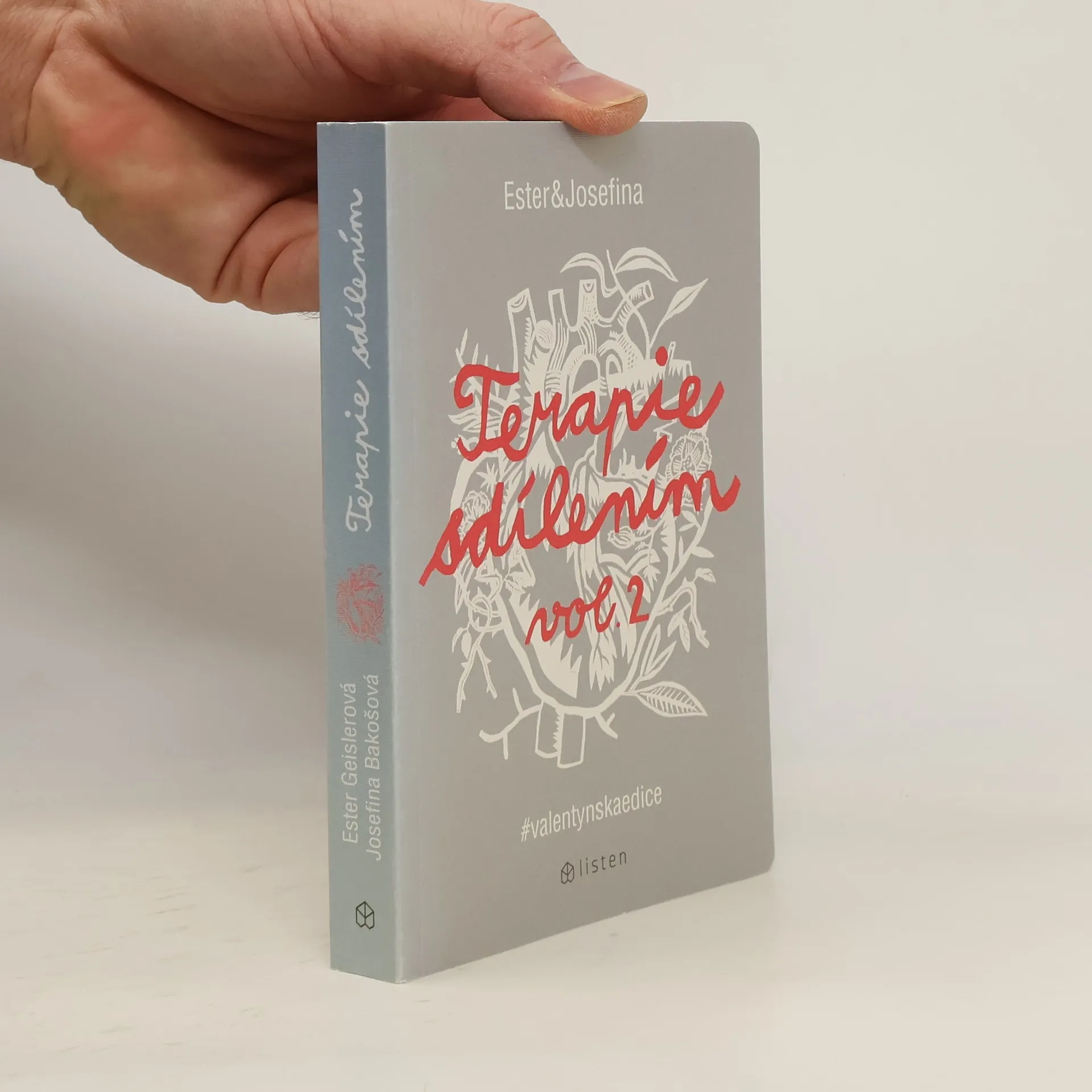 Ester Geislerová a Josefina Bakošová zahájily na sociálních sítích revoluci. Zveřejnily několik mrazivých a zároveň cynický úsměv vzbuzujících vět, kterými se jistý muž rozešel s jejich kamarádkou. Toto malé gesto spustilo lavinu; během následujících týdnů jim čtenáři začali posílat své rozchodové věty. Hashtag „terapie sdilenim“ se stal doslova kultovním a rozčísl poklidnou českou hladinku sociálních sítí naprosto nečekaným způsobem. Miliony lidí najednou získaly pocit, že nejsou ve virtuálním světě na reálné vztahy samy a že někteří jsou na tom vlastně ještě mnohem hůř než oni. Terapie zabrala. Netrvalo dlouho a vznikla kniha, která byla naprosto věrným obrazem autentického prostředí chatů a messengerů, kde se často odehrávají začátky, ale také konce vztahů. Kniha zaznamenala tak velký úspěch, že její pokračovaní bylo jen otázkou času. Terapie sdílením: Valentýnská edice je na světě! Tentokrát nejen o trpkém rozcházení, ale také o vztazích jako takových – někdy úsměvných a někdy až krutě smutných.