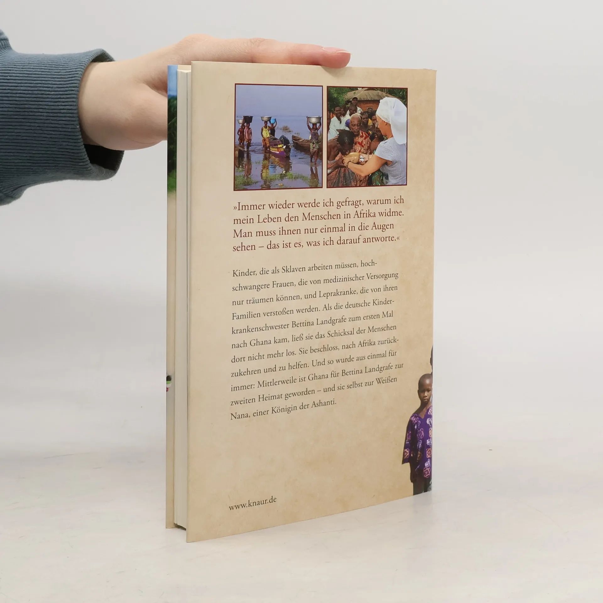 »Immer wieder werde ich gefragt, warum ich mein Leben den Menschen in Afrika widme. Man muss ihnen nur einmal in die Augen sehen – das ist es, was ich darauf antworte.« Kinder, die als Sklaven arbeiten müssen, hochschwangere Frauen, die von medizinischer Versorgung nur träumen können, und Leprakranke, die von ihren Familien verstoßen werden. Als die deutsche Kinderkrankenschwester Bettina Landgrafe zum ersten Mal nach Ghana kam, ließ sie das Schicksal der Menschen dort nicht mehr los. Sie beschloss, nach Afrika zurückzukehren und zu helfen. Und so wurde aus einmal für immer: Mittlerweile ist Ghana für Bettina Landgrafe zur zweiten Heimat geworden – und sie selbst zur Weißen Nana, einer Königin der Ashanti.