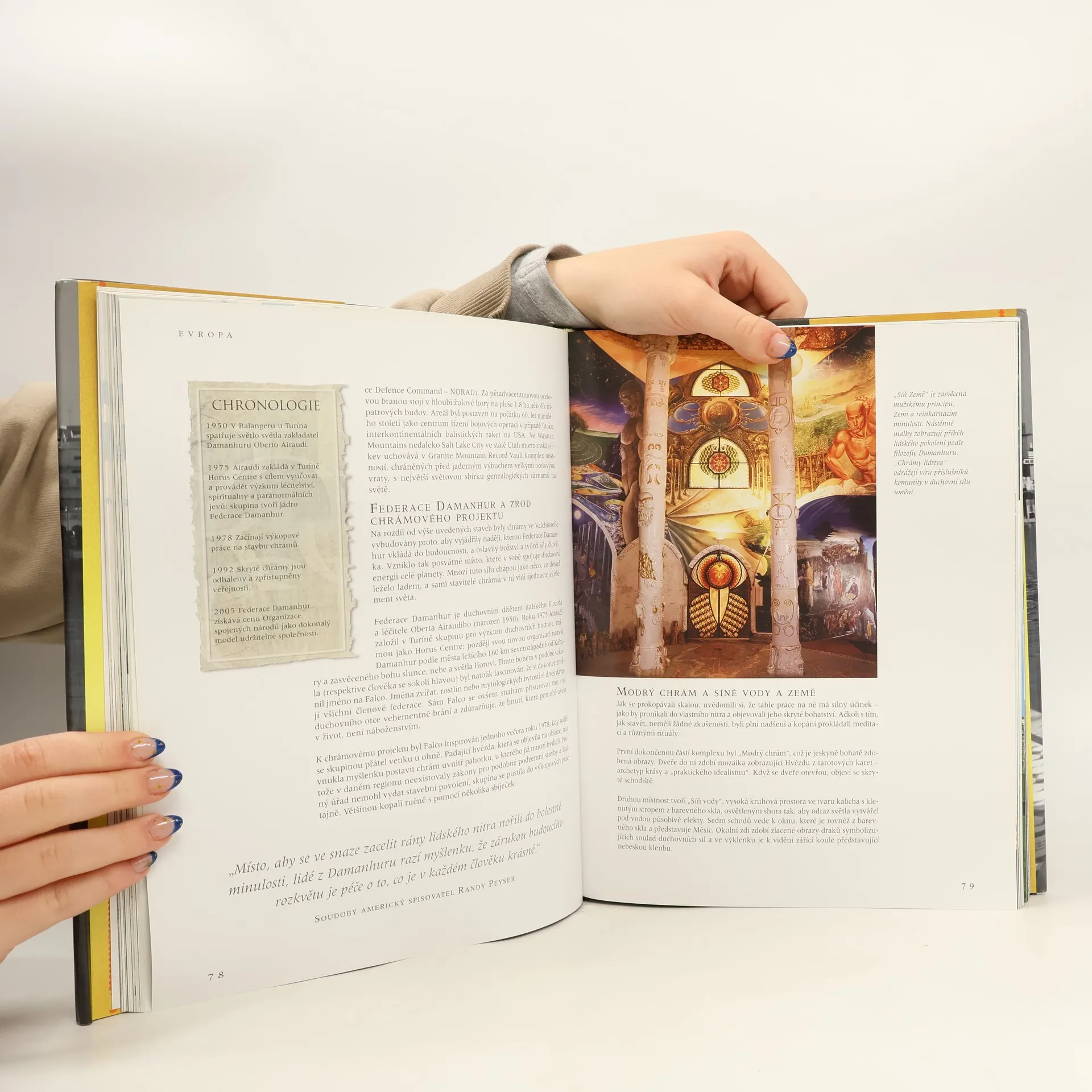Pouti ke svatyním konané jako projev úcty nebo pokání byly od nejstarších dob neodmyslitelnou součástí náboženských rituálů. Všechna starověká náboženství měla svá svatá místa například věštírny v Delfách a Dodona v Řecku. Ještě staršími posvátnými místy jsou Stonehenge a zejména pyramidy v Gíze, které dodnes odolávají všem pokusům odhalit jejich tajemství. Také ve středověku byla pro křesťany prubířským kamenem víry pouť a pro muslimy představuje pouť do Mekky dokonce jeden z pěti základních pilířů islámu. Autor vypráví příběhy padesáti svatyní, které uctívají všechna hlavní světová náboženství, a nabízí mnohostranný pohled na více než šest tisíciletí dějin. (poutní svatyně od Stonehenge po Santiago de Compostela)