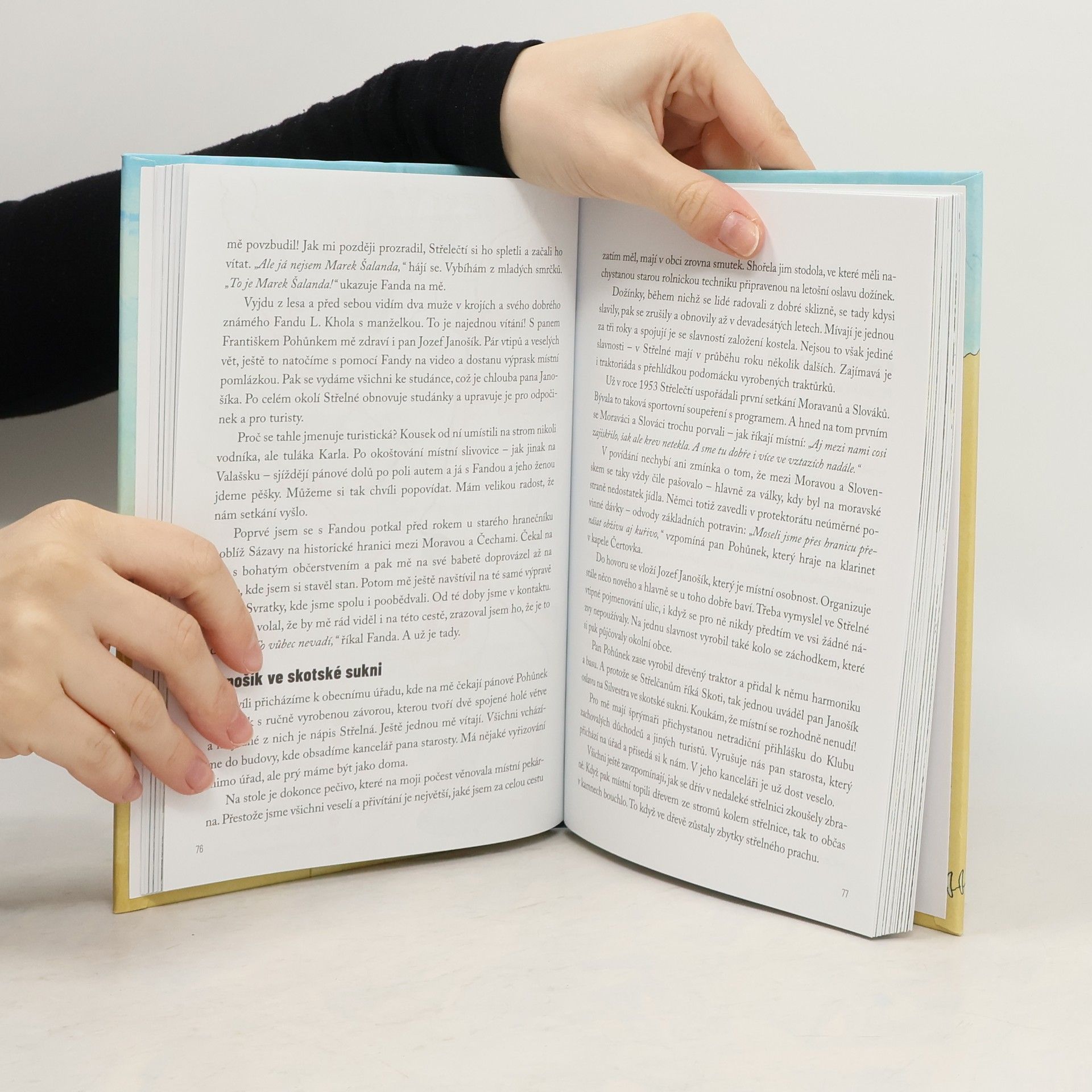 Za humna s Markem Šalandou. Netradiční cestopis z česko-slovenské hranice. „Ale dejte pokoj! Tohle se opravdu stalo?! Tomu se mi snad ani nechce věřit.“ Se zatajeným dechem hltám jeden příběh za druhým. Třeba o zapomenuté dělostřelecké bitvě nebo o československé vlajce, co byla na měsíci, o falešné svatbě, světlonoších, o tak trochu jiných partyzánech, o vzniku hodinek Prim nebo o statečném faráři. A víte, co skrýval obraz v Závrší? Nebo proč to občas bouchne v kamnech ve Střelné? Lidé mi vyprávějí o dřevěné ponorce, pěstování bavlny na Moravě, tajemném kostelíku, o statečných ženách v Beskydech či narození T. G. Masaryka. Všechny tyto příběhy jsem slyšel na česko-slovenské hranici, kterou jsem pěšky prošel cik-cak od vesnice k vesnici…