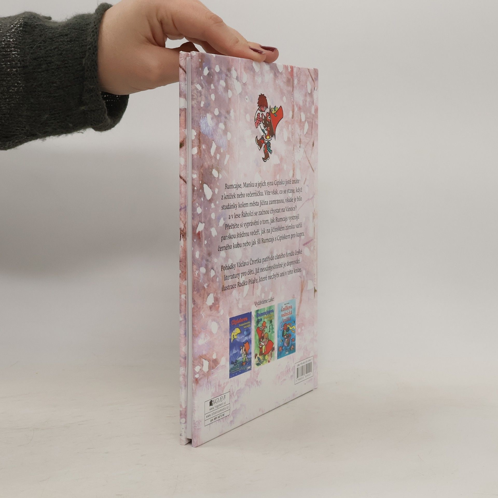 Rumcajse, Manku a jejich syna Cipíska jistě znáte z knížek nebo večerníčku. Víte však, co se stane, když studánky kolem města Jičína zamrznou, všude je bílo a v lese Řáholci se začnou chystat na Vánoce? Přečtěte si vyprávění o tom, jak Rumcajs vystrojil panskou štědrou večeři, jak na jičínském zámku vařili černého kubu nebo jak šli Rumcajs s Cipískem pro kapra.
