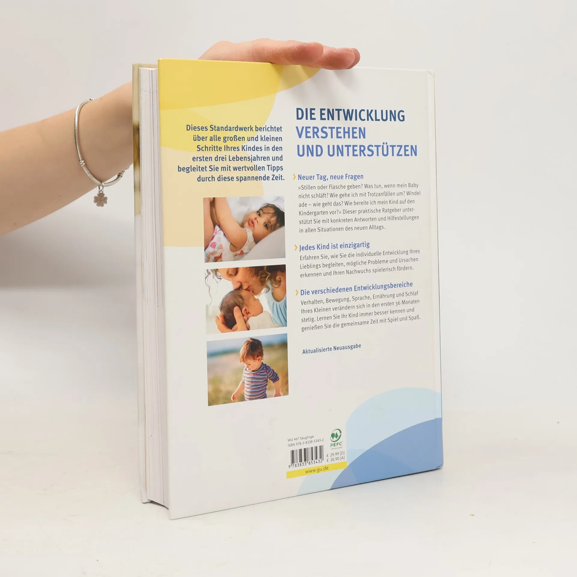 Die Entwicklung des Kindes verstehen und unterstützenIn Riesenschritten entwickelt sich das Baby vom Säugling zum Kleinkind. Für Eltern steht in dieser bewegenden Zeit stets ein Anliegen im Mittelpunkt: Geht es meinem Kleinen gut, entwickelt es sich altersgemäß? Dieser Ratgeber begleitet Eltern bis zum dritten Geburtstag des Kindes und geht auf alle bedeutsamen Entwicklungen in dieser Zeitspanne ein. Alle wichtigen Fragen des Eltern-Alltags werden hier beantwortet: Sie erfahren, wie die motorische oder sprachliche Entwicklung ihres Babys verläuft und wie sie sie spielerisch fördern können, wie ihr Kind es leicht schafft, trocken zu werden, ob der Schnuller Fluch oder Segen ist, wie man ein Kind in der Trotzphase erzieherisch am besten begleitet oder wie man ein Dreijähriges optimal auf den Kindergarten vorbereitet.