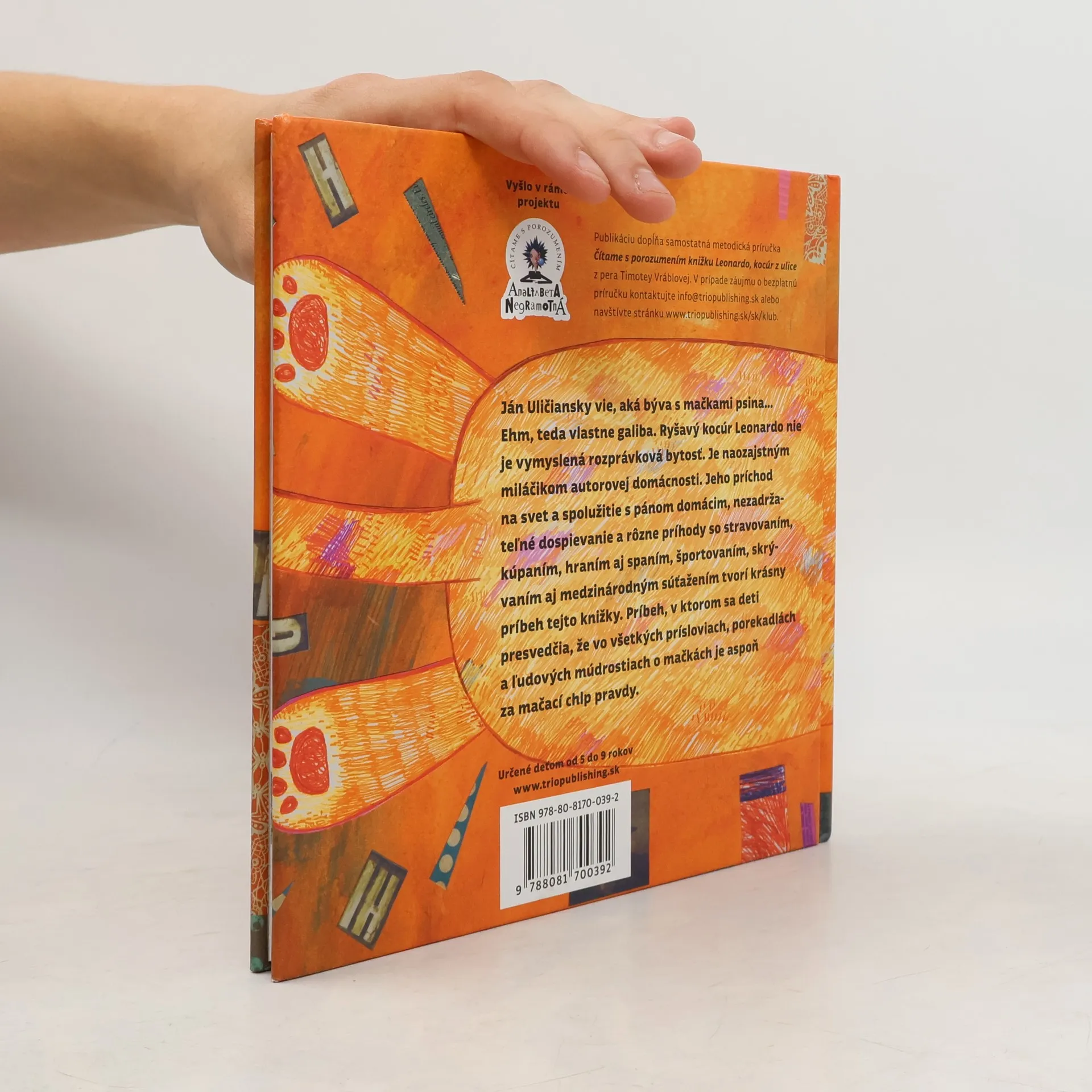Určené deťom od 5 do 9 rokovNajkrajšia+najlepšia kniha zimy 2013 v súťaži organizovanej BibianouVyšlo v edícii Analfabeta Negramotná/Čítame s porozumenímRyšavý kocúr Leonardo nie je len vymyslená rozprávková bytosť. Je naozajstným miláčikom autorovej domácnosti. A vďaka tejto knižke sa môže ľahko stať aj členom vašej rodiny. Ján Uličiansky dobre vie, aká býva s mačkami psina. Alebo skôr oštara? Tak či tak, s kocúrikom Leom sa veru nikdy nenudil. Leonardov príchod na svet, nezadržateľné dospievanie a spolužitie s pánom domácim, rôzne príhody s papaním, kúpaním, hraním aj spaním, športovaním, skrývaním aj medzinárodným súťažením tvorí krásny príbeh pre deti. Príbeh, v ktorom sa presvedčíte, že na všetkých prísloviach, porekadlách a ľudových múdrostiach o mačkách a s mačkami je vždy aspoň za mačací chlp pravdy.