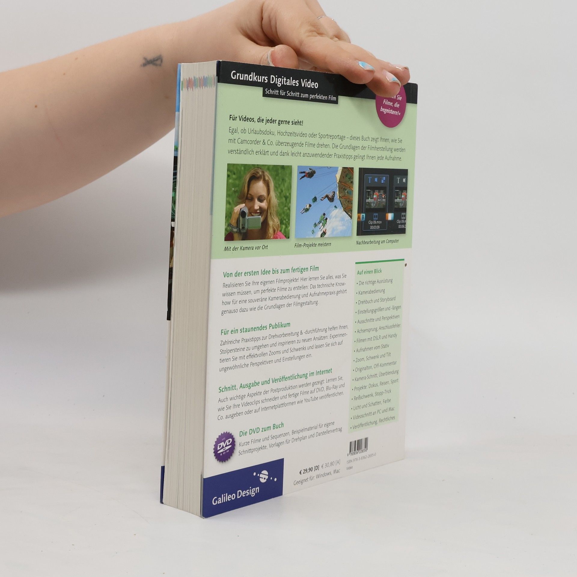 Was ist die richtige Kameraeinstellung, wann setze ich einen Schwenk sinnvoll ein, und wie hole ich alles aus einem Motiv heraus? In diesem Praxisbuch lernen Sie, wie Sie mit Camcordern und ähnlichen Geräten beeindruckende Filme erstellen. Robert Klaßen führt Sie Schritt für Schritt in die Welt des digitalen Videofilmens ein, beginnend bei der ersten Idee bis hin zur Nachbearbeitung und Ausgabe am Computer. Sie erfahren, was Perspektiven, Achsensprung und Einstellungsgrößen bedeuten, erhalten zahlreiche Tipps zur Kamerabedienung und lernen, raffinierte Effekte anzuwenden, um Ihren Aufnahmen das gewisse Etwas zu verleihen. Ob Urlaubsdokumentationen, Hochzeiten, Geburtstagsfeiern oder rasante Sport-Events – Sie werden schnell in der Lage sein, die unterschiedlichsten Aufnahmesituationen zu meistern. Das Buch zeigt Ihnen auch, wie Sie Ihre Videos bearbeiten, schneiden und für Plattformen wie YouTube oder auf DVD ausgeben können. Genaue Anleitungen sowie Beispiel-Takes auf der DVD helfen Ihnen, das Gelernte direkt anzuwenden und auszuprobieren. So werden Ihre Filme nicht nur spannender und abwechslungsreicher, sondern auch technisch deutlich verbessert.