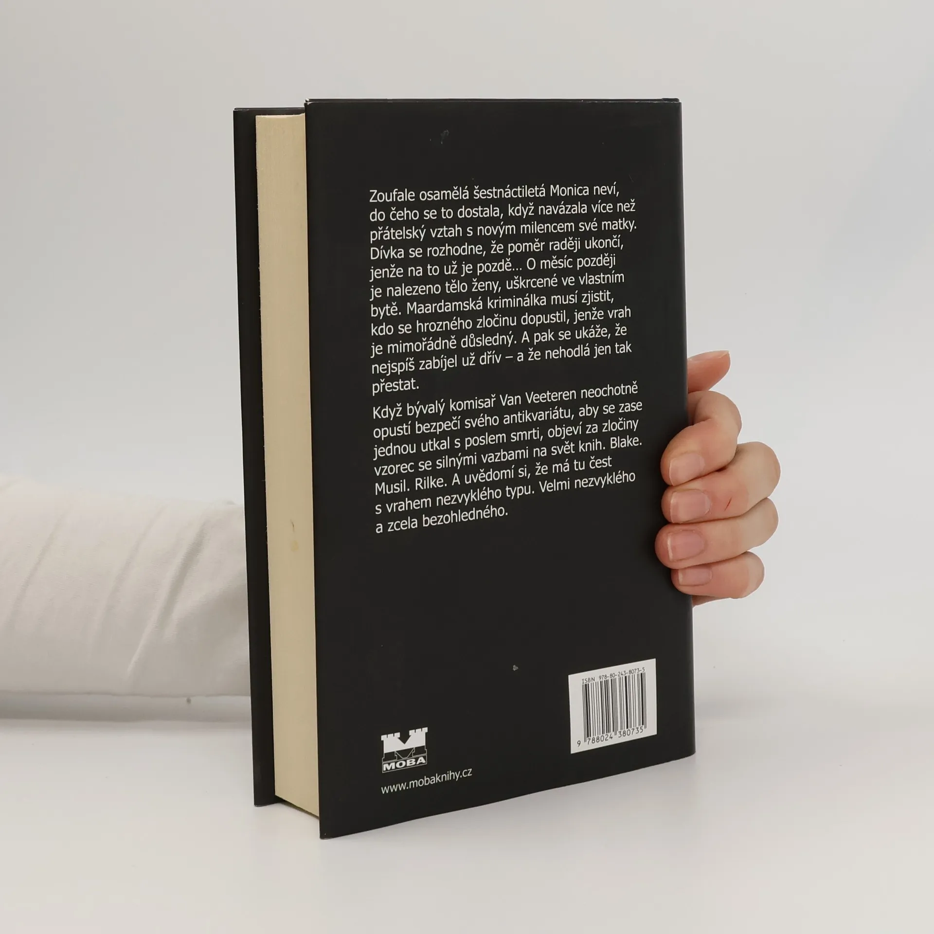 Spojitost mezi škrtičovými oběťmi je velmi slabá. Když bývalý komisař Van Veeteren neochotně opustí bezpečí svého antikvariátu, aby se zase jednou utkal s poslem smrti, objeví vzorec se silnými vazbami na svět knih. Blake. Musil. Rilke. A vytuší, že má tu čest s vrahem nezvyklého typu. Velmi nezvyklého. Vlaštovka, kočka, růže, smrt je devátým detektivním příběhem Nesserovy cenami ověnčené série o policistech z fiktivního města Maardamu.