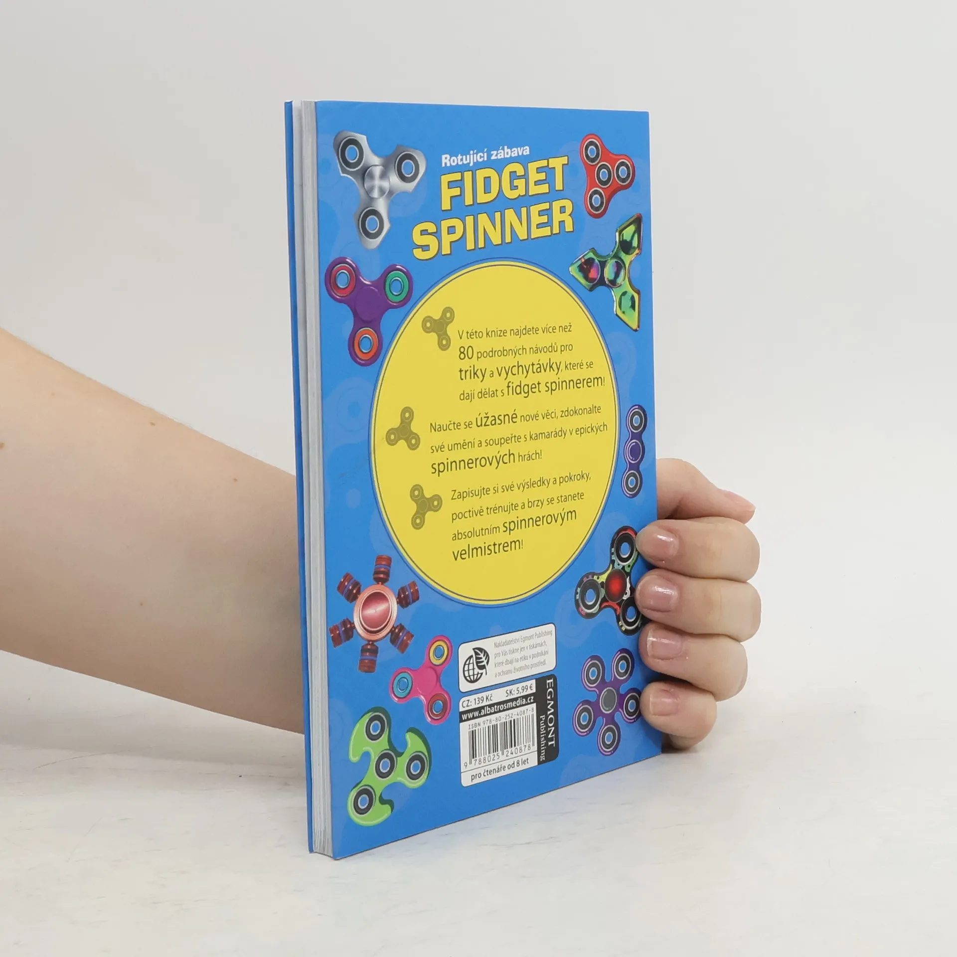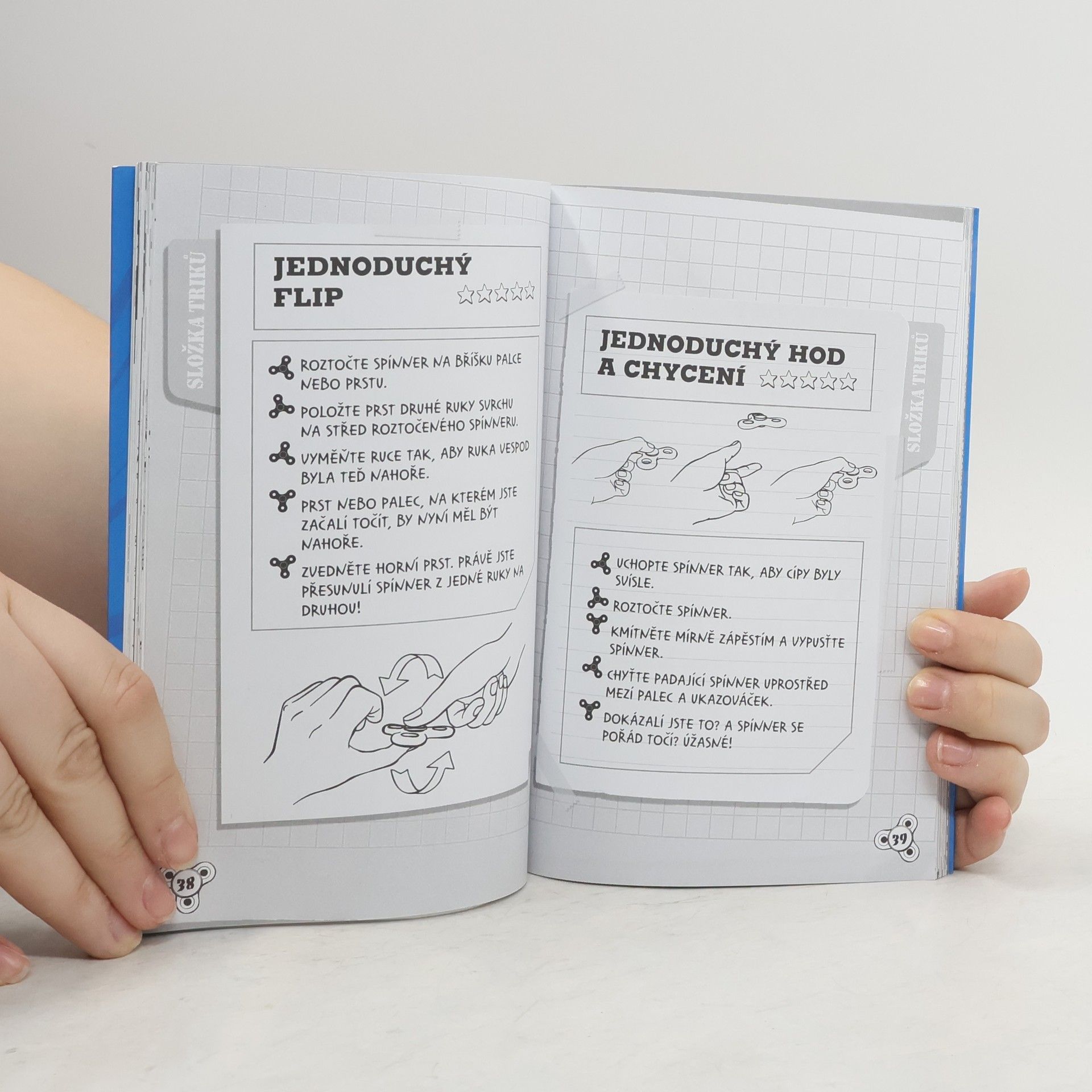 Roztoč svoje triky a vychytávky. Naučte se úžasné nové věci s největším hitem dnešní doby! V této knize najdete více než 80 podrobných návodů pro triky a vychytávky, které se dají dělat s fidget spinnerem! Naučte se úžasné nové věci, zdokonalte své umění a soupeřte s kamarády v epických spinnerových hrách! Zapisujte si své výsledky a pokroky, poctivě trénujte a brzy se stanete absolutním spinnerovým velmistrem!