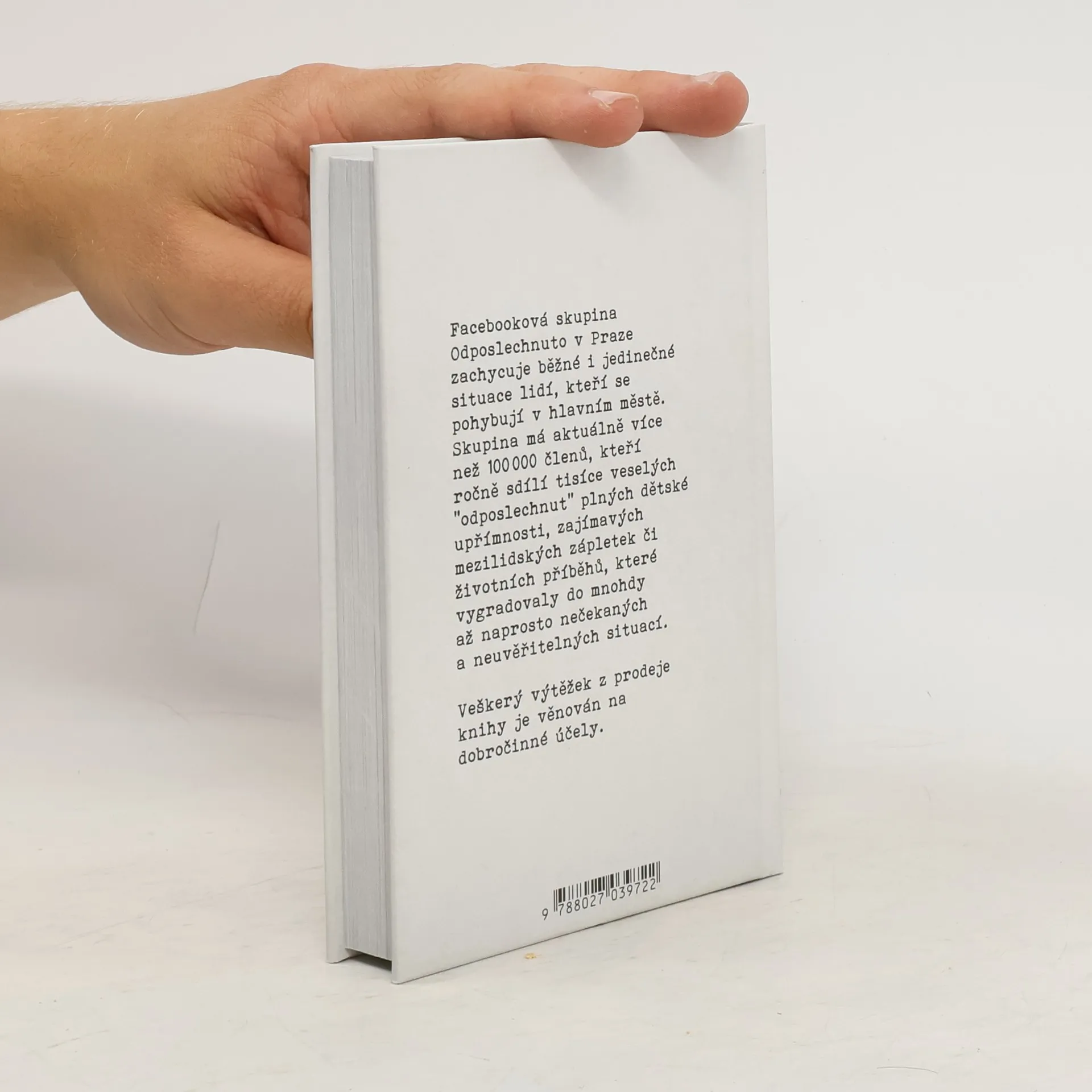 Facebooková skupina Odposlechnuto v Praze zachycuje běžné i jedinečné příhody lidí pohybujících se v hlavním městě. Skupina má aktuálně více než 90 000 členů, kteří ročně sdílejí tisíce veselých „odposlechnutí” plných dětské upřímnosti, zajímavých mezilidských zápletek či životních příběhů, jež vygradovaly do mnohdy až naprosto nečekaných a neuvěřitelných situací. Kniha obsahuje ty nejlepší příspěvky a hlášky sdílené ve facebookové skupině Odposlechnuto v Praze.