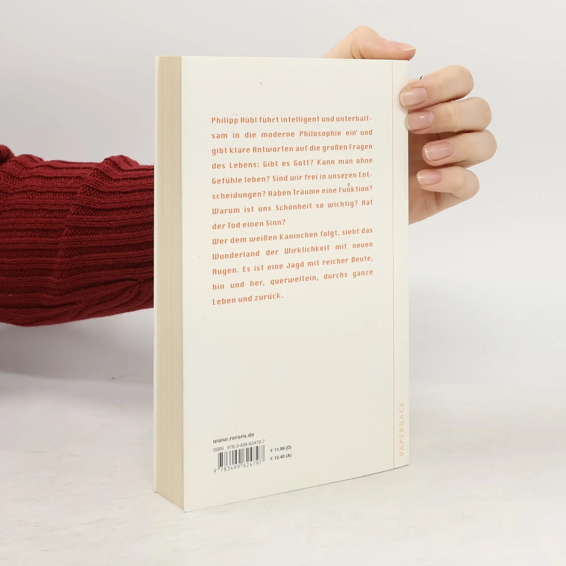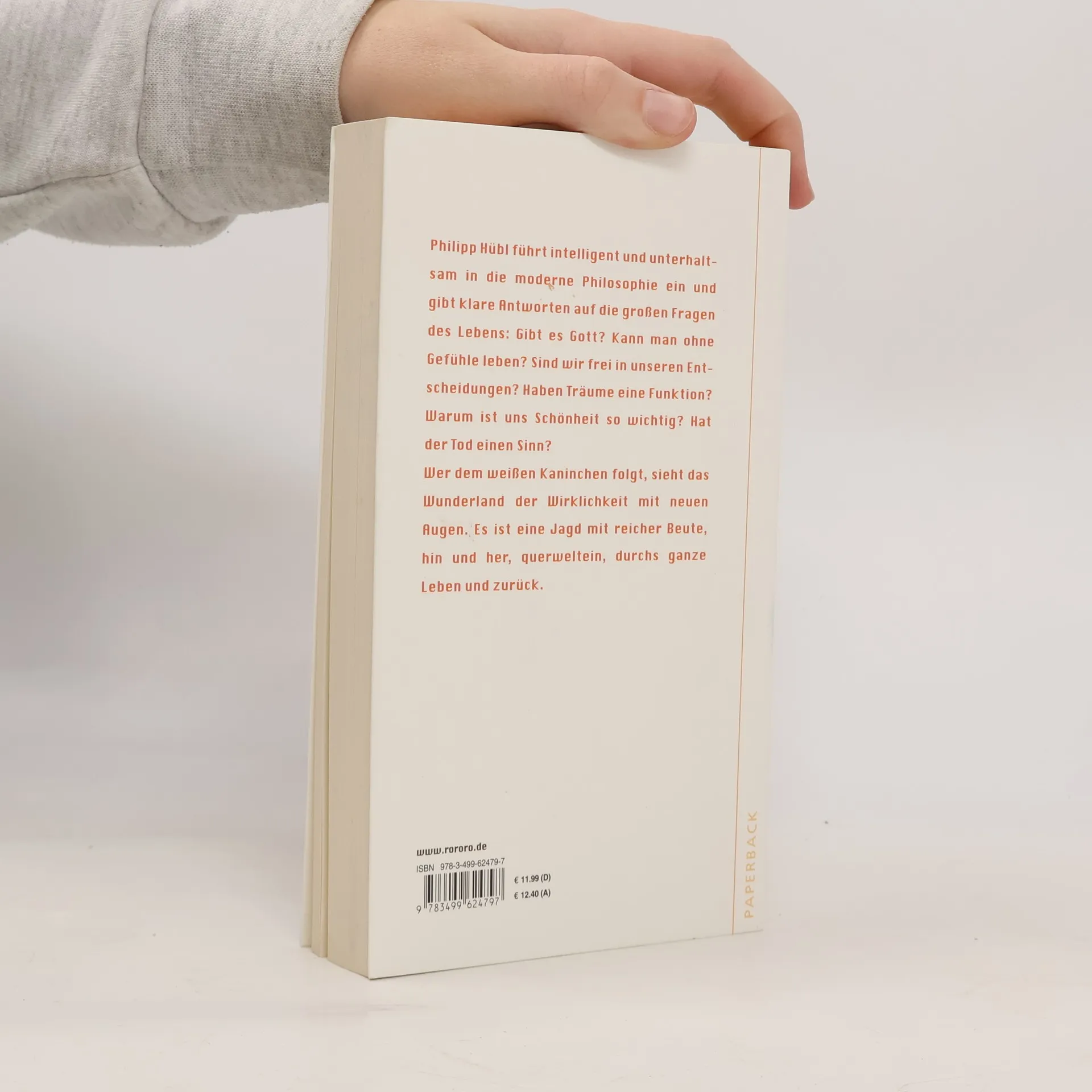 Philipp Hübl führt intelligent und unterhaltsam in die moderne Philosophie ein und gibt klare Antworten auf die großen Fragen des Lebens: Gibt es Gott? Kann man ohne Gefühle leben? Sind wir frei in unseren Entscheidungen? Haben Träume eine Funktion? Warum ist uns Schönheit so wichtig? Hat der Tod einen Sinn? Wer dem weißen Kaninchen folgt, sieht das Wunderland der Wirklichkeit mit neuen Augen. Es ist eine Jagd mit reicher Beute, hin und her, querweltein, durchs ganze Leben und zurück.«Hübls locker und luzide geschriebene Einführung ist wärmstens zu empfehlen.»Frankfurter Allgemeine Zeitung