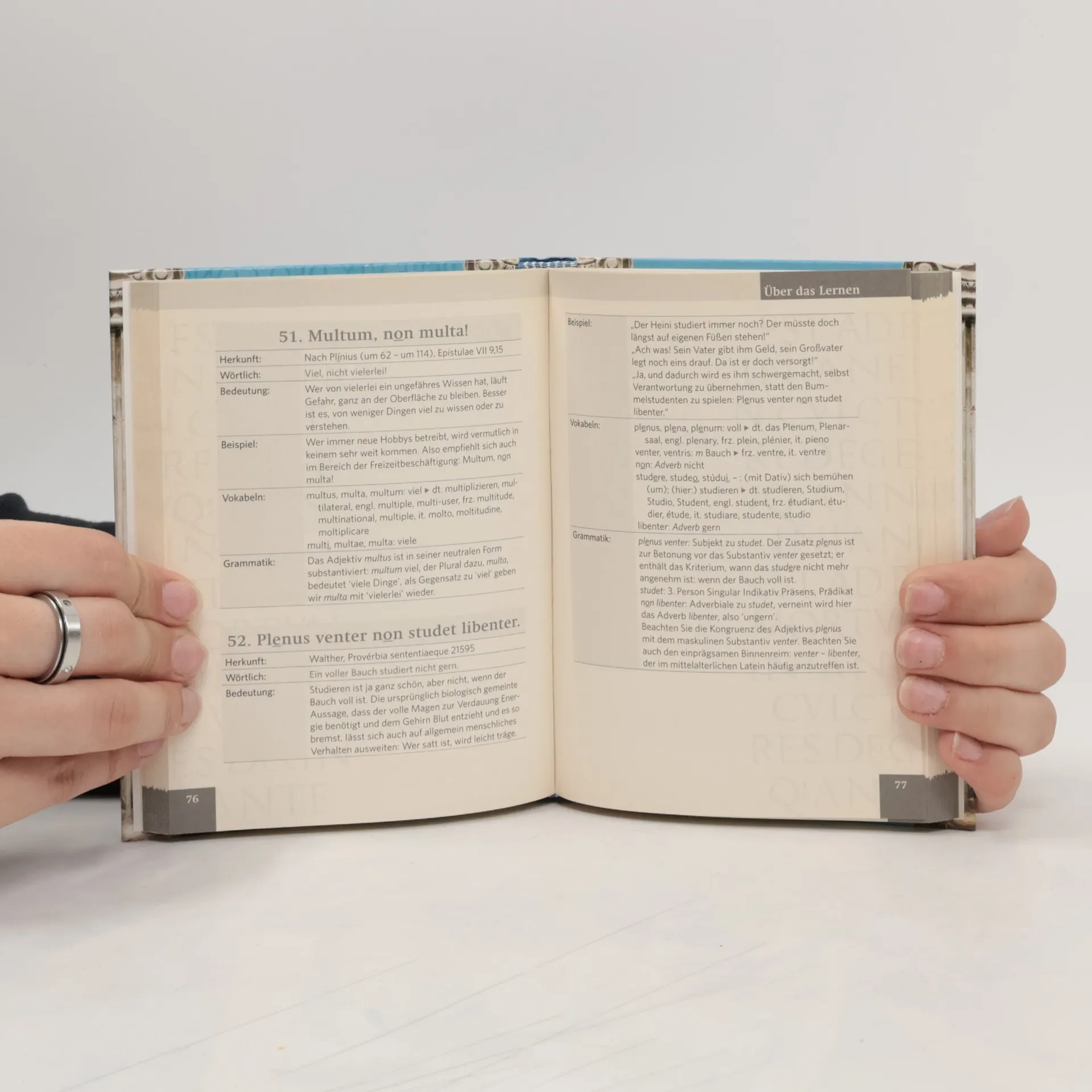 Was steckt hinter der Redensart »Si tacuisses, philosophus manisses« (Wenn du geschwiegen hättest, wärst du Philosoph geblieben)? Wann sagt man »Principiis obsta!« (Wehre den Anfängen), wann »Nihil nimis!« (Nichts im Übermaß)? In fünf Kapiteln finden sich 102 lateinische Spruchweisheiten und ihre Übersetzungen. Kompakte Erläuterungen und Anwendungsbeispiele geben präzise Auskunft über Bedeutung, Vokabular und Grammatik. Zusätzlich ermöglichen zwei Register (lateinisch und deutsch) das schnelle Auffinden eines gesuchten Spruchs.