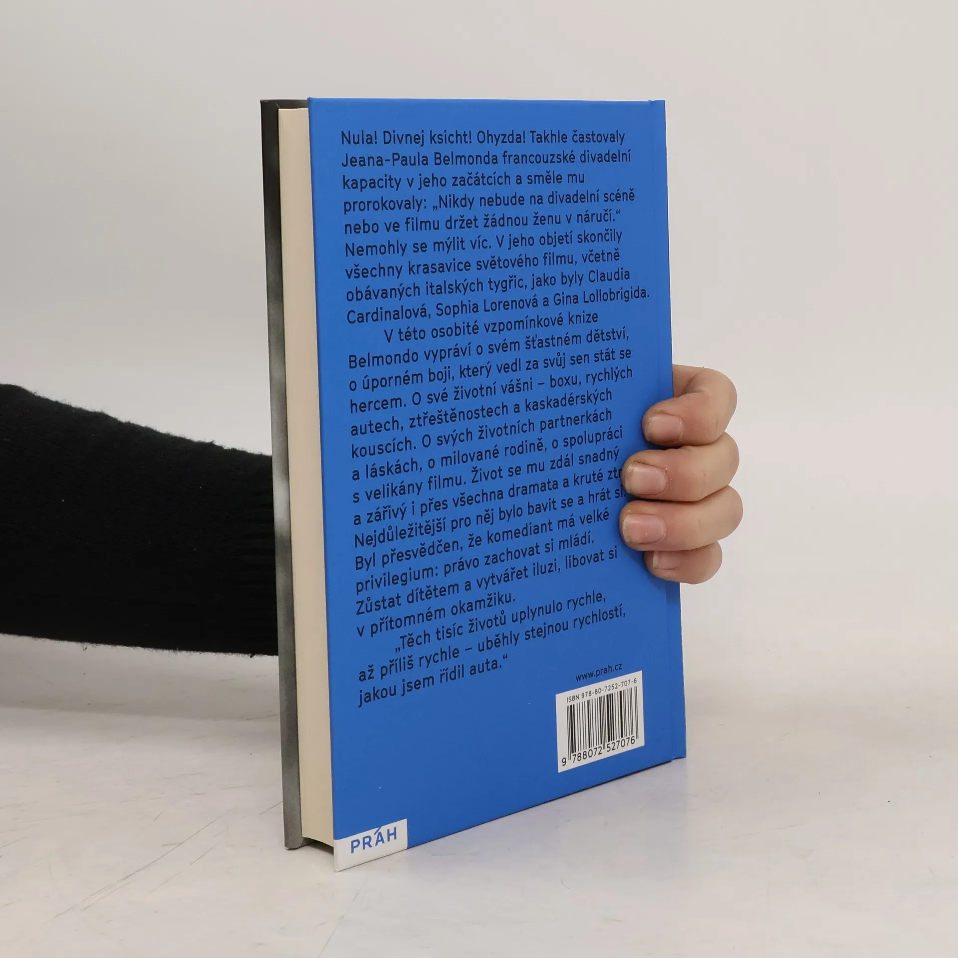 „Těch tisíc životů uplynulo rychle, až příliš rychle – uběhly stejnou rychlostí, jakou jsem řídil auta.“ Víc než jen autobiografie. Vyprávění o výjimečném a šťastném životě. Nula! Divnej ksicht! Ohyzda! Takhle častovali Jeana-Paula Belmonda francouzské divadelní kapacity v jeho začátcích a směle mu prorokovali: „Nikdy nebude na divadelní scéně nebo ve filmu držet žádnou ženu v náručí.“ Nemohli se mýlit víc. Skončily v ní všechny krasavice světového filmu, včetně obávaných italských tygřic, jako byly Claudia Cardinaleová, Sophia Lorenová a Gina Lollobrigida. V této osobité vzpomínkové knize Belmondo vypráví o svém šťastném dětství, o úporném boji, který vedl za svůj sen stát se hercem. O své životní vášni – boxu, rychlý autech, ztřeštěnostech a kaskadérských kouscích. O svých životních partnerkách a láskách, o milované rodině, o spolupráci s velikány filmu. Život se mu zdál snadný a zářivý i přes všechna dramata a kruté ztráty. Nejdůležitější pro něj bylo bavit se a hrát si. Byl přesvědčen, že komediant má velké privilegium: právo zachovat si mládí. Zůstat dítětem a vytvářet iluzi, libovat si v přítomném okamžiku.