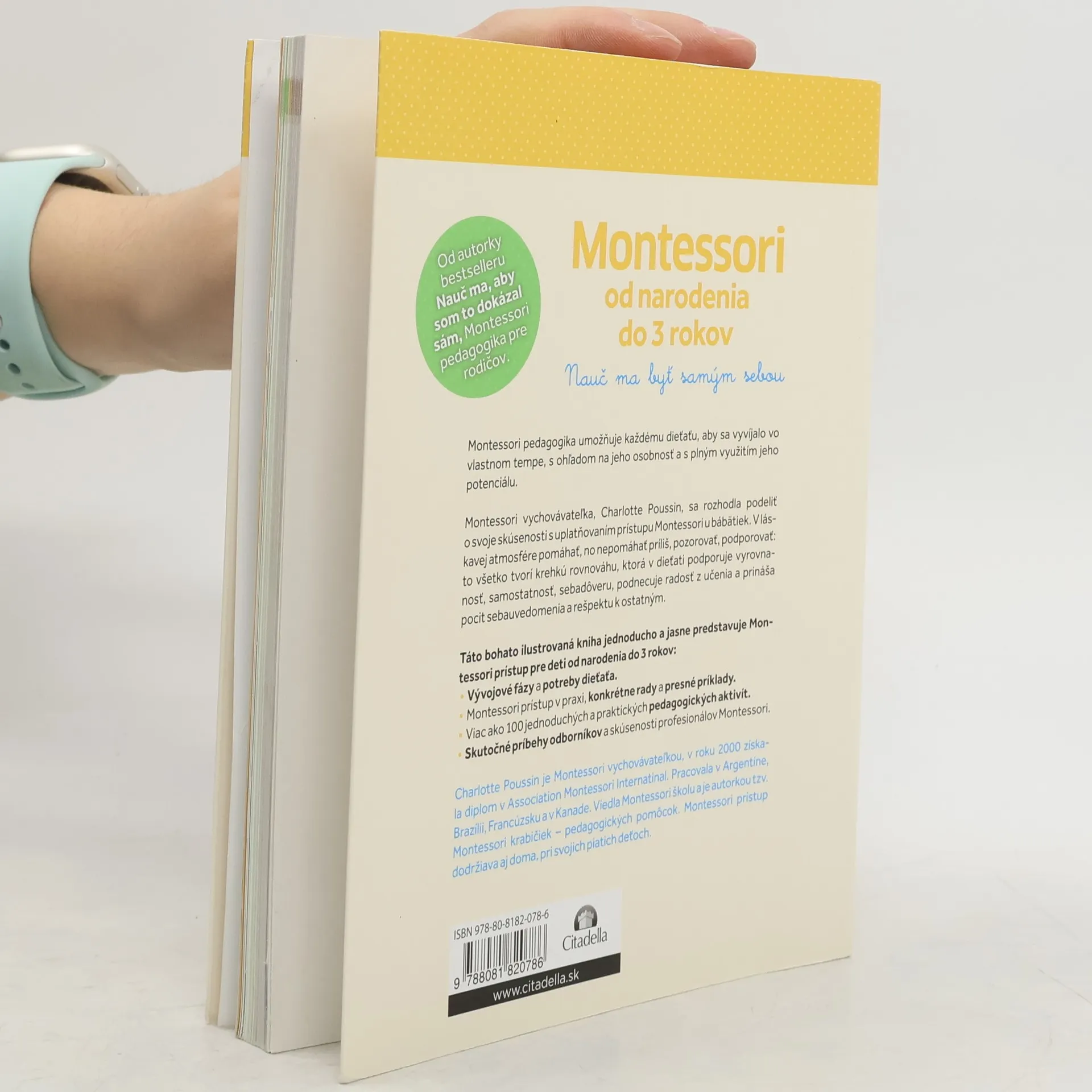 Montessori pedagogika umožňuje každému dieťaťu, aby sa vyvijalo vo vlastnom tempe, s ohľadom na jeho osobnosť a s plným využitím jeho potenciálu. Montessori vychovávateľka, Charlotte Poussin, sa rozhodla podeliť o svoje skúsenosti s uplatňovaním prístupu Montessori u bábätiek. V láskavej atmosfére pomáhať, no nepomáhať príliš, pozorovať, podporovať: to všetko tvorí krehkú rovnováhu, ktorá v dieťati podporuje vyrovnanosť,lsamostatnosť, sebadôveru, podnecuje radosť z učenia a prináša pocit sebauvedomenia a rešpektu k ostatným. Táto bohato ilustrovaná kniha jednoducho a jasne predstavuje Montessori prístup pre deti od narodenia do 3 rokov: - Vývojové fázy a potreby dieťata. - Montessori prístup v praxi, konkrétne rady a presné príklady. - Viac ako 100 jednoduchých a praktických pedagogických aktivít. - Skutočné príbehy odborníkov a skúsenosti profesionálov Montessori.