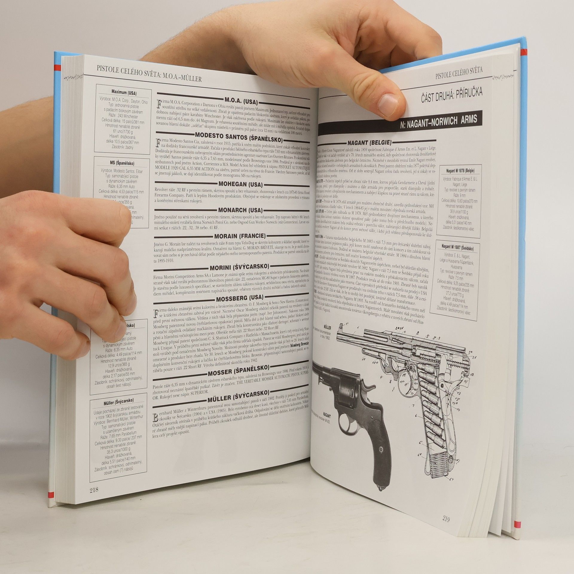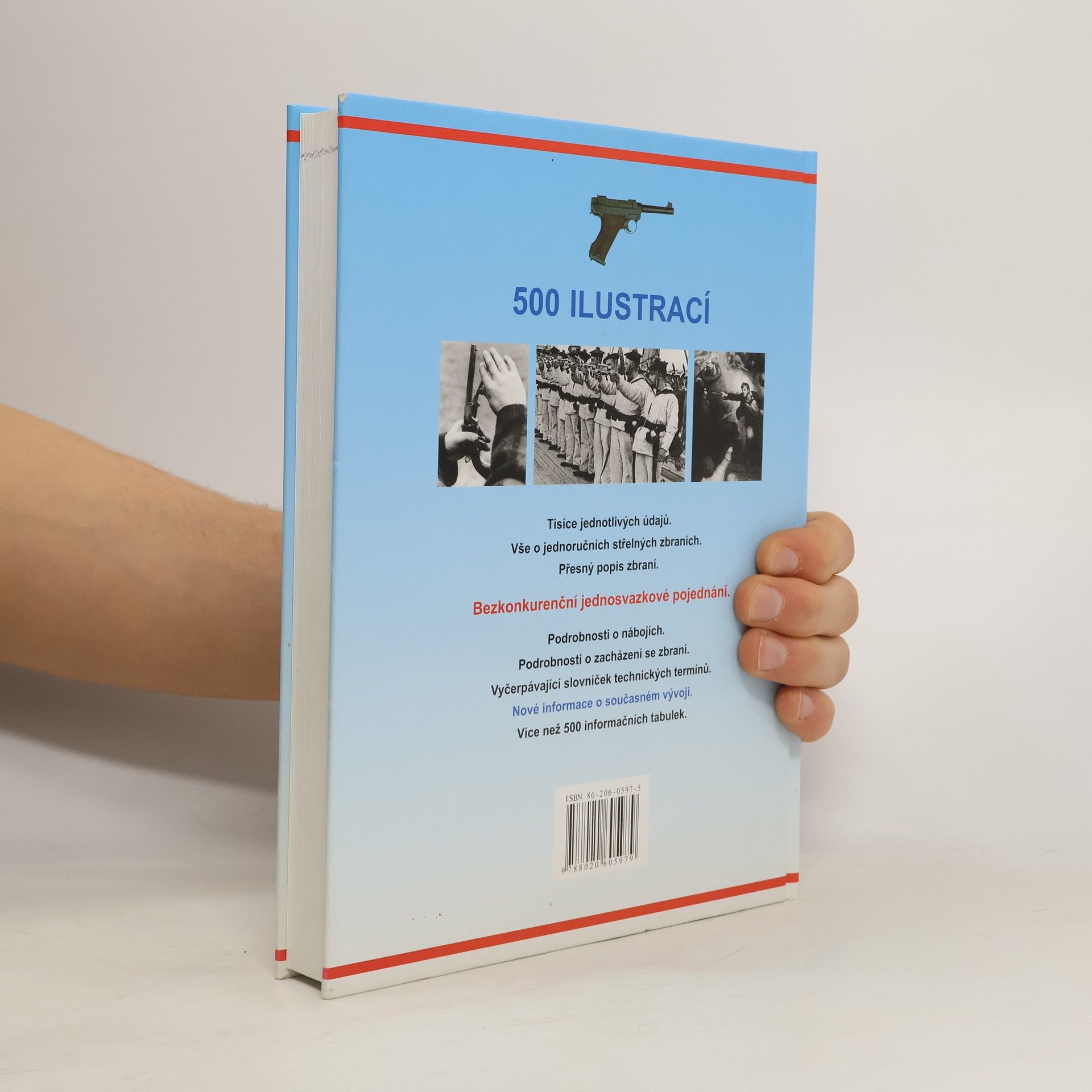 Informace jsou zde předkládány v úpravě, v níž se slučuje jasnost a přehlednost se snadnou orientací. Kniha je považována za nejnadějnější pokus, jaký byl kdy učiněn v podrobné analýze sta let světové výroby zbraní. Vše o jednručních střelných zbraních. Tisíce jednotlivých údajů. Přes 500 ilustrací. Přesný popis zbraní. Přes 500 informačních tabulek. Podrobnost o nábojích. Podrobnosti o zacházení se zbraní. Slovníček technických termínů. Informace o současném vývoji.