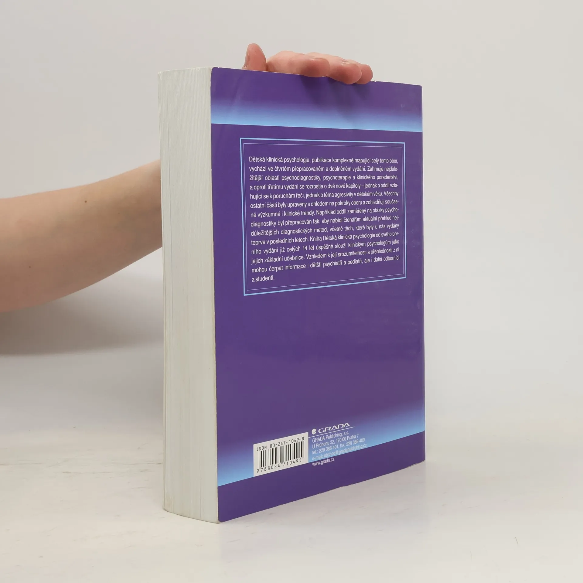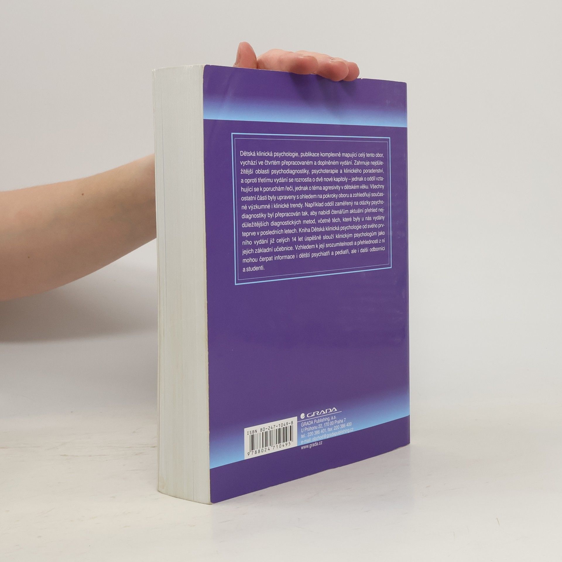 Dětská klinická psychologie, publikace komplexně mapující celý tento obor, vychází ve čtvrtém přepracovaném a doplněném vydání. Zahrnuje nejdůležitější oblasti psychodiagnostiky, psychoterapie a klinického poradenství, a oproti třetímu vydání se rozrostla o dvě nové kapitoly – jednak o oddíl vztahující se k poruchám řeči, jednak o téma agresivity v dětském věku. Všechny ostatní části byly upraveny s ohledem na pokroky oboru a zohledňují současné výzkumné i klinické trendy. Například oddíl zaměřený na otázky psychodiagnostiky byl přepracován tak, aby nabídl čtenářům aktuální přehled nejdůležitějších diagnostických metod, včetně těch, které byly u nás vydány teprve v posledních letech. Kniha Dětská klinická psychologie od svého prvního vydání již celých 14 let úspěšně slouží klinickým psychologům jako jejich základní učebnice. Vzhledem k její srozumitelnosti a přehlednosti z ní mohou čerpat informace i dětští psychiatři a pediatři, ale i další odborníci a studenti.