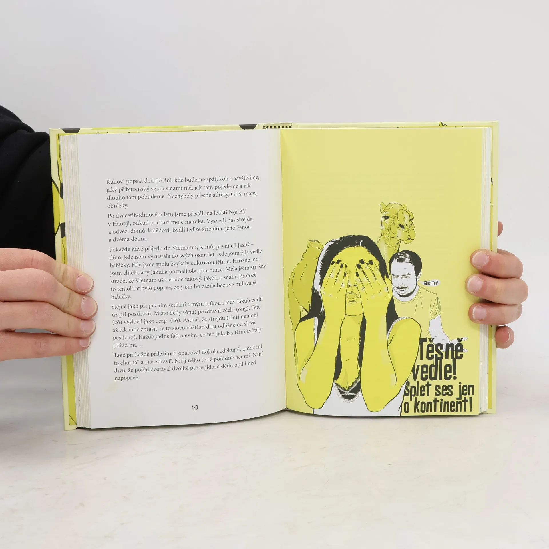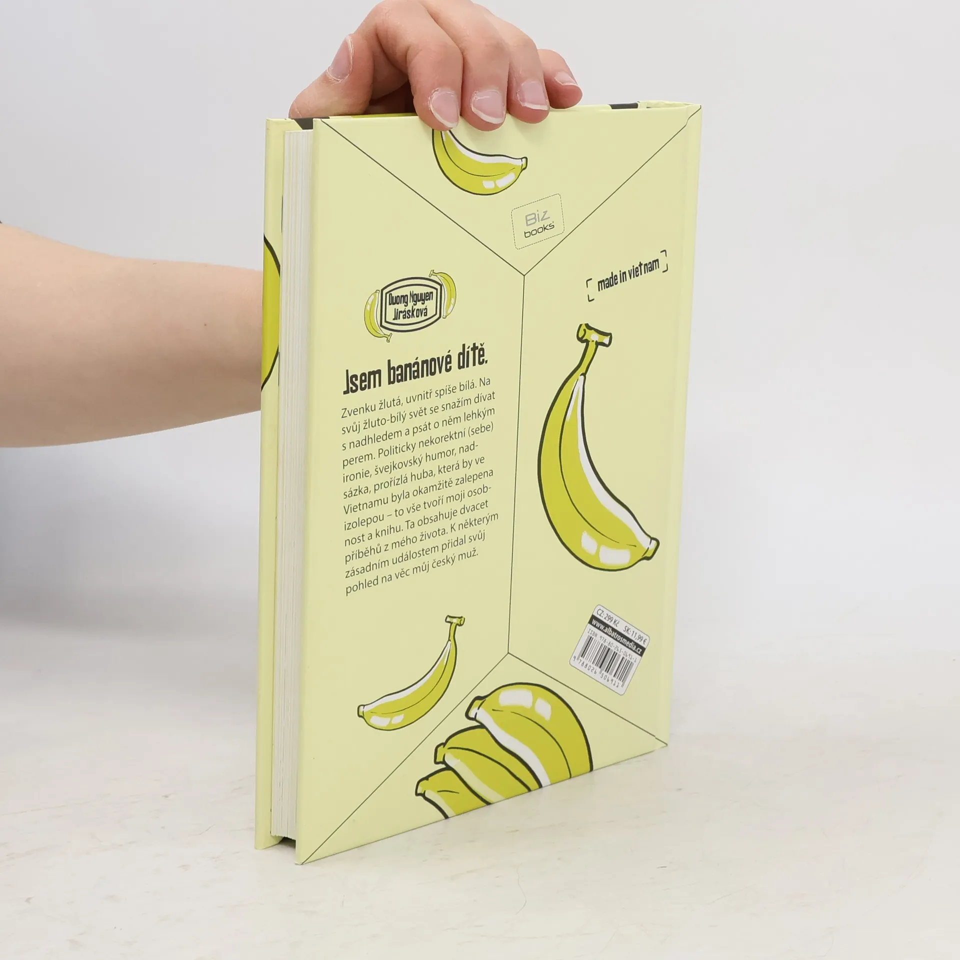 Jsem banánové dítě – zvenku žlutá, uvnitř spíše bílá. Na svůj žluto-bílý svět se snažím dívat s nadhledem a psát o něm lehkým perem. Politicky nekorektní (sebe)ironie, švejkovský humor, nadsázka, prořízlá huba, která by ve Vietnamu byla okamžitě zalepena izolepou – to vše tvoří moji osobnost a knihu. Ta obsahuje dvacet příběhů z mého života. Píšu o svých rodičích, o tom, jak mě vychovali. Píšu o tom, jak jsem se s tím, jak mě vychovali, prodírala životem v české společnosti. Píšu také o tom, jak jsem si v životě nevěděla rady a chtěla to vyřešit útěkem do Francie. Píšu o hledání muže, o vyhazovu z práce, o depresích a mániích, o Vietnamu, o babičce, zkrátka o všem, co se mi z dnešního pohledu zdá pro můj život důležité. K některým zásadním událostem přidal svůj pohled na věc můj český muž. O autorce: Papírově jsem čistokrevná Vietnamka, ale míchá se ve mně jak asijská, tak evropská kultura. Jsem totiž Vietnamka made in Czechoslovakia. Byla jsem počata v Litvínově, narodila jsem se v Hanoji a v osmi letech jsem se s rodiči odstěhovala do východních Čech. Bydlím s českým manželem v Lysé a od narození mám na hlavě dvě lysinky. Miluji švejkovský humor, nadsázku a politicky nekorektní sarkasmus skoro stejně jako stračenky z Českého ráje a cukrovou třtinu z hanojského trhu.