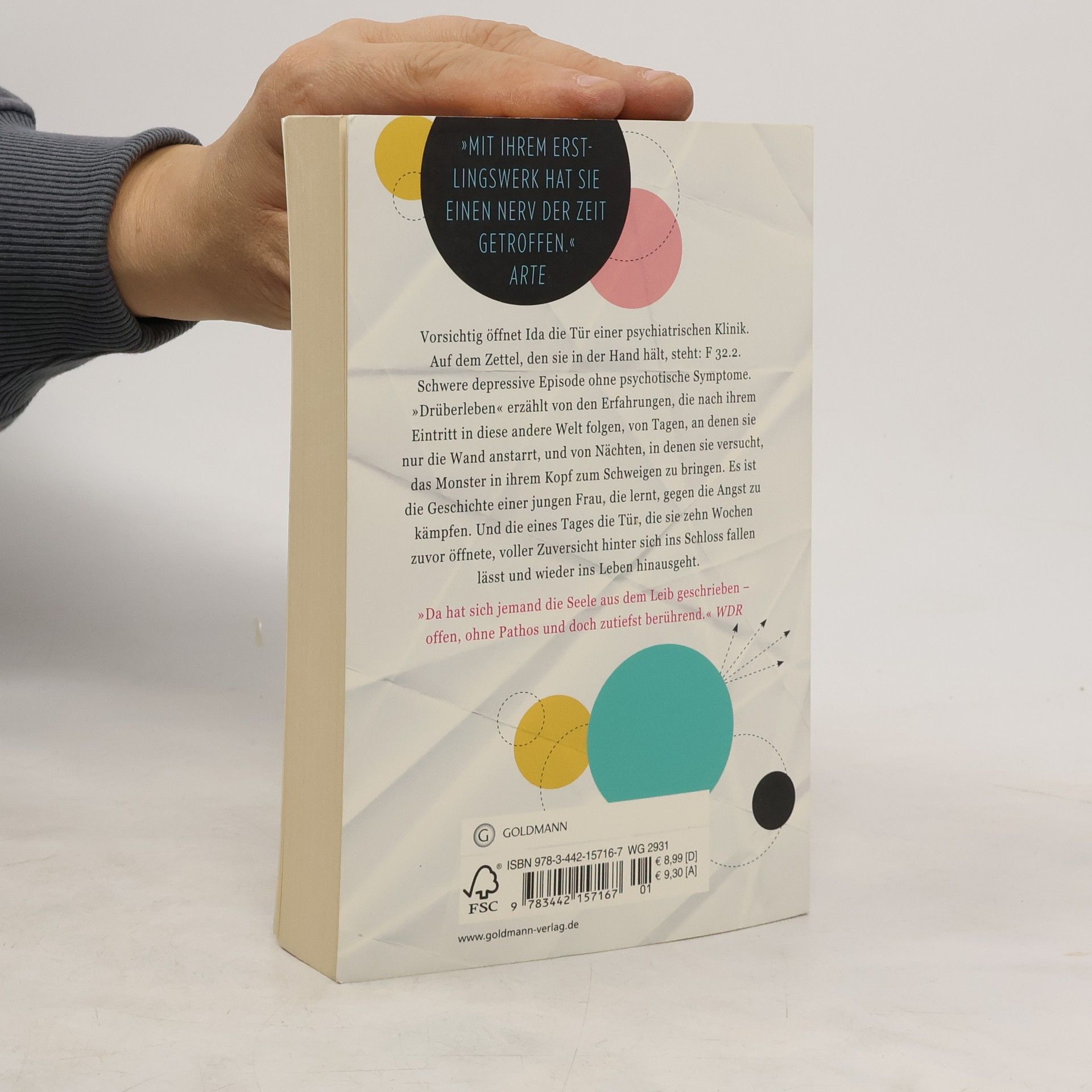 Depressionen sind doch kein Grund, traurig zu sein! Ida steht zum wiederholten Mal in ihrem Leben vor der Tür einer psychiatrischen Klinik, mit einem Zettel, auf dem ihr Name und der Grund für ihren Aufenthalt genannt sind. F 32.2. Schwere depressive Episode ohne psychotische Symptome. »Drüberleben« erzählt von den Tagen nach diesem Tag, von den Nächten, in denen die Monster im Kopf und unter dem Bett wüten, den Momenten, in denen jeder Gedanke ein neuer Einschlag im Krisengebiet ist. Es erzählt von Gruppen, die merkwürdige Namen tragen, von Kaffee in ungesund großen Mengen, von Rückschlägen und kleinen Fortschritten, von Mitpatienten und von Therapeuten. Es ist die Geschichte einer jungen Frau, die sich zehn Wochen in eine Klinik begibt und dort lernt zu kämpfen. Gegen die Angst und gegen das Tiefdruckgebiet im Kopf.