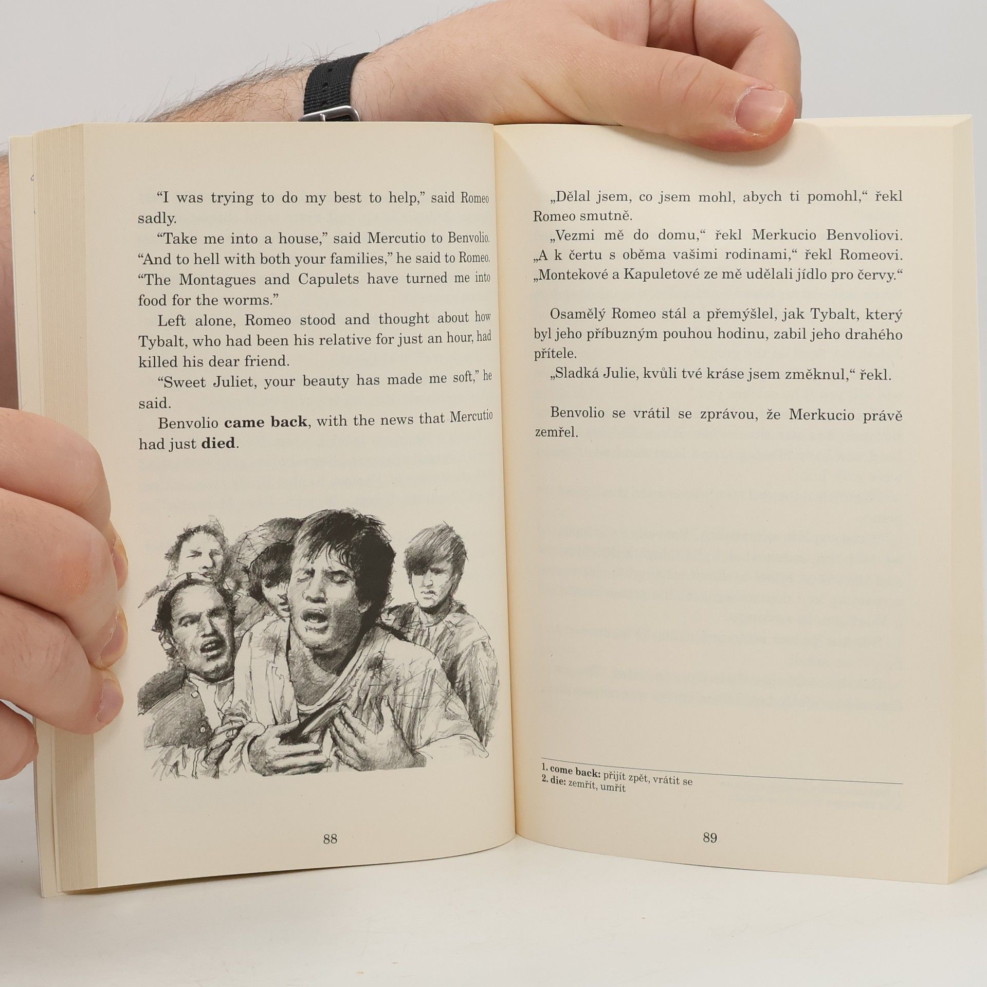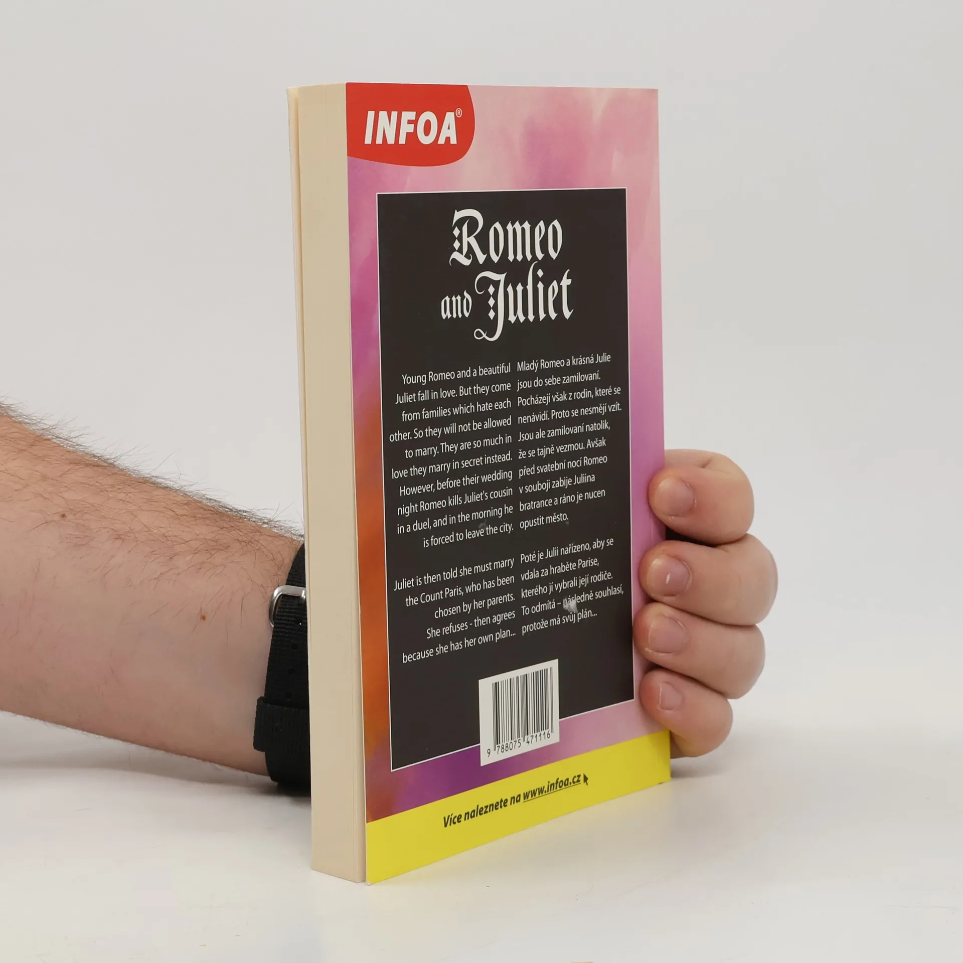 Podle příběhu Williama Shakespeara. Souběžný český text. Určeno pro mírně pokročilé. Mladý Romeo a krásná Julie jsou do sebe zamilovaní. Pocházejí však z rodin, které se nenávidí. Proto se nesmějí vzít. Jsou ale zamilovaní natolik, že se tajně vezmou. Avšak před svatební nocí Romeo v souboji zabije Juliina bratrance a ráno je nucen opustit město. Poté je Julii nařízeno, aby se vdala za hraběte Parise, kterého jí vybrali její rodiče. To odmítá – následně souhlasí, protože má svůj plán...